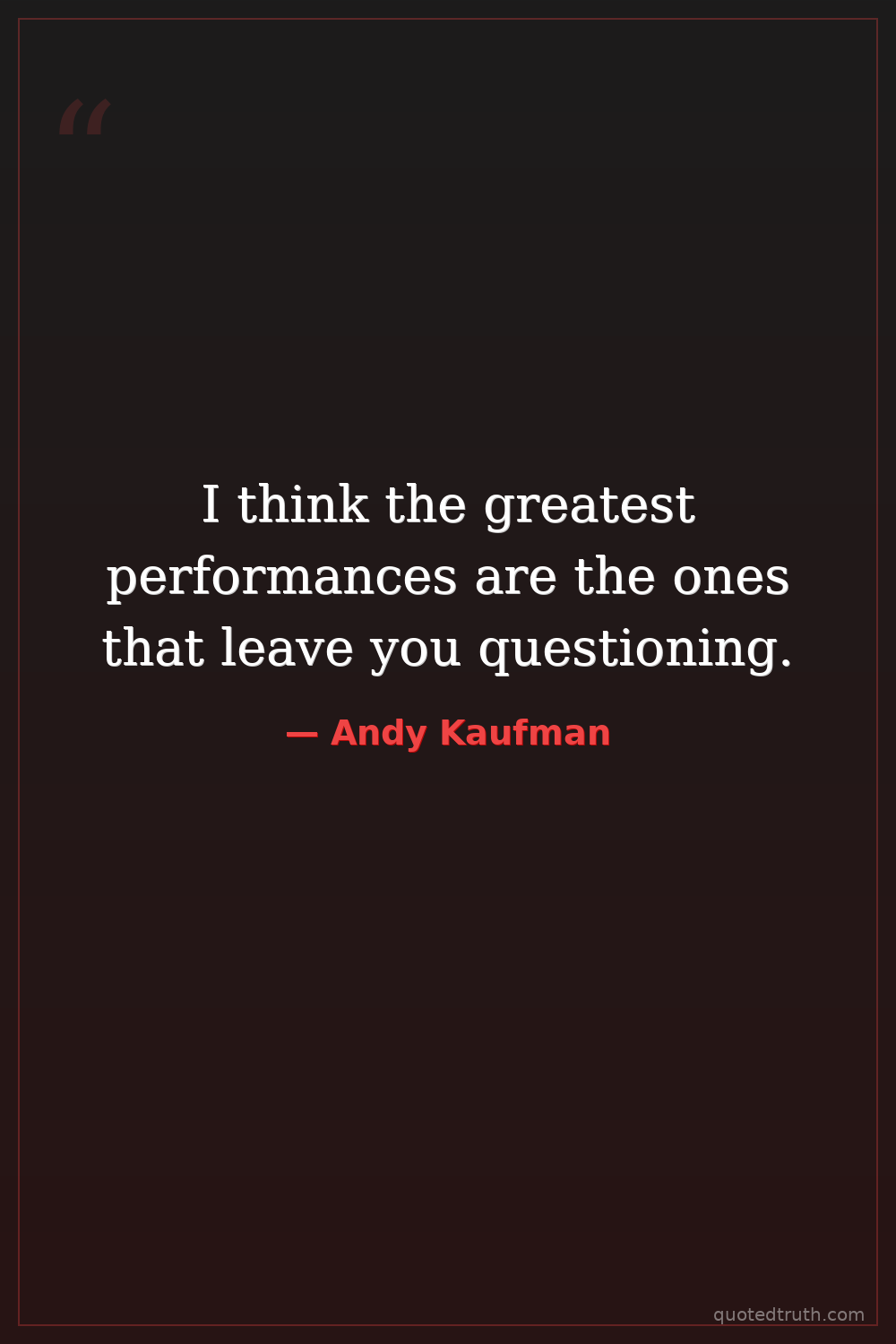 I think the greatest performances are the ones that leave you questioning.