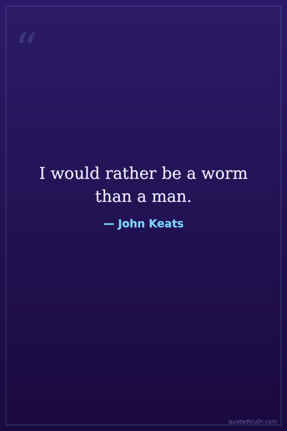 I would rather be a worm than a man.