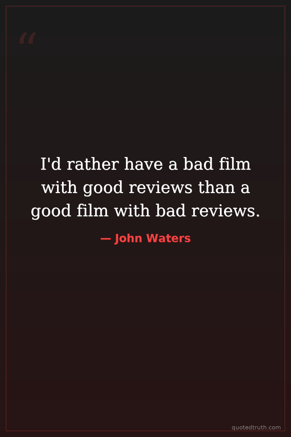 I'd rather have a bad film with good reviews than a good film with bad reviews.