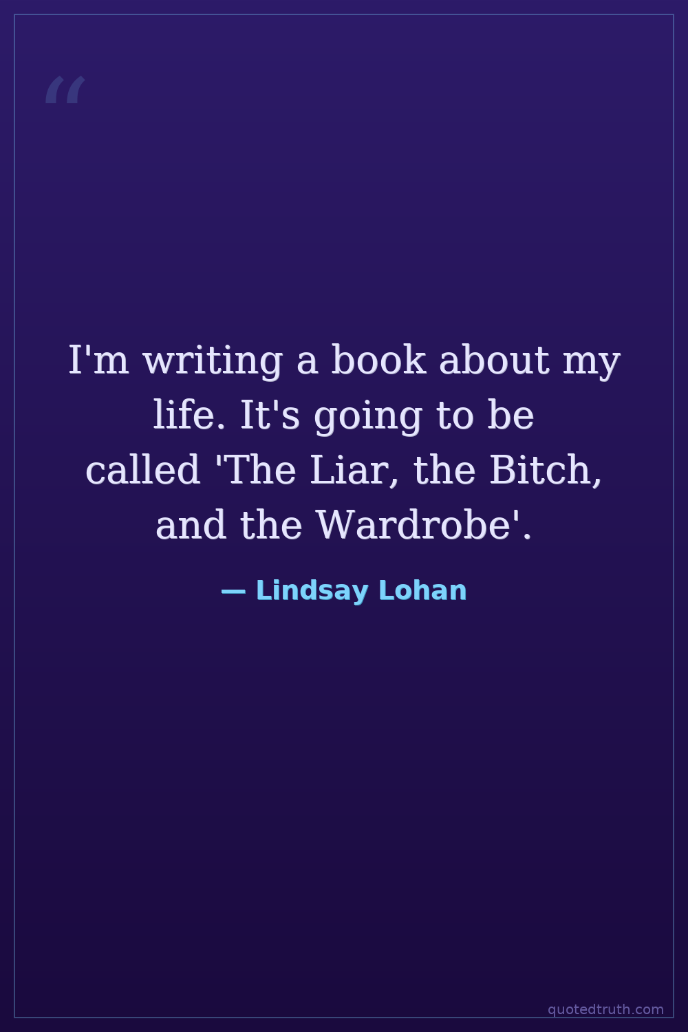 I'm writing a book about my life. It's going to be called 'The Liar, the Bitch, and the Wardrobe'.