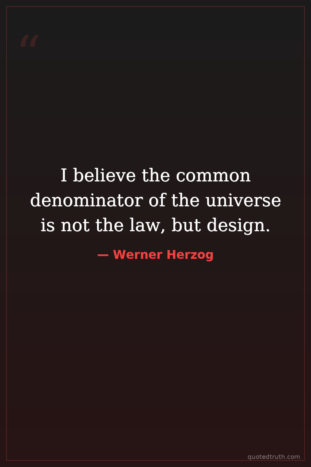I believe the common denominator of the universe is not the law, but design.