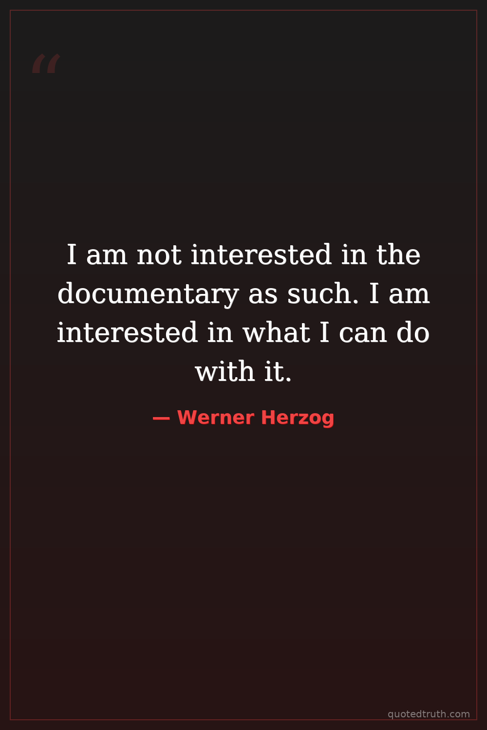 I am not interested in the documentary as such. I am interested in what I can do with it.