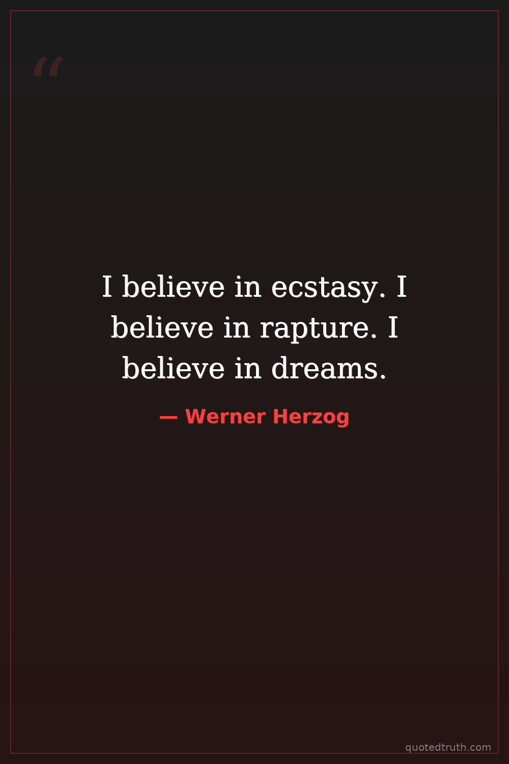 I believe in ecstasy. I believe in rapture. I believe in dreams.