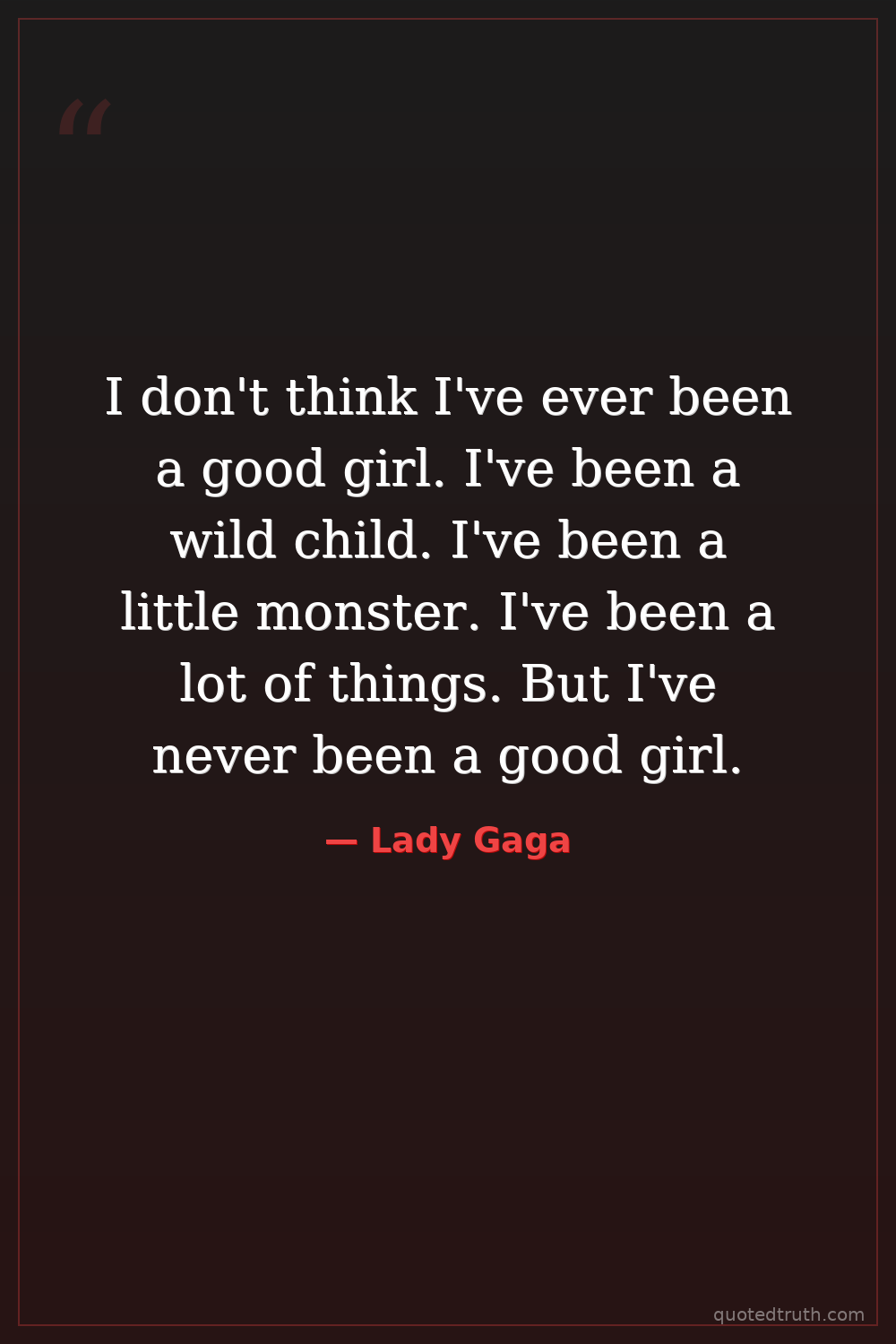 I don't think I've ever been a good girl. I've been a wild child. I've been a little monster. I've been a lot of things. But I've never been a good girl.