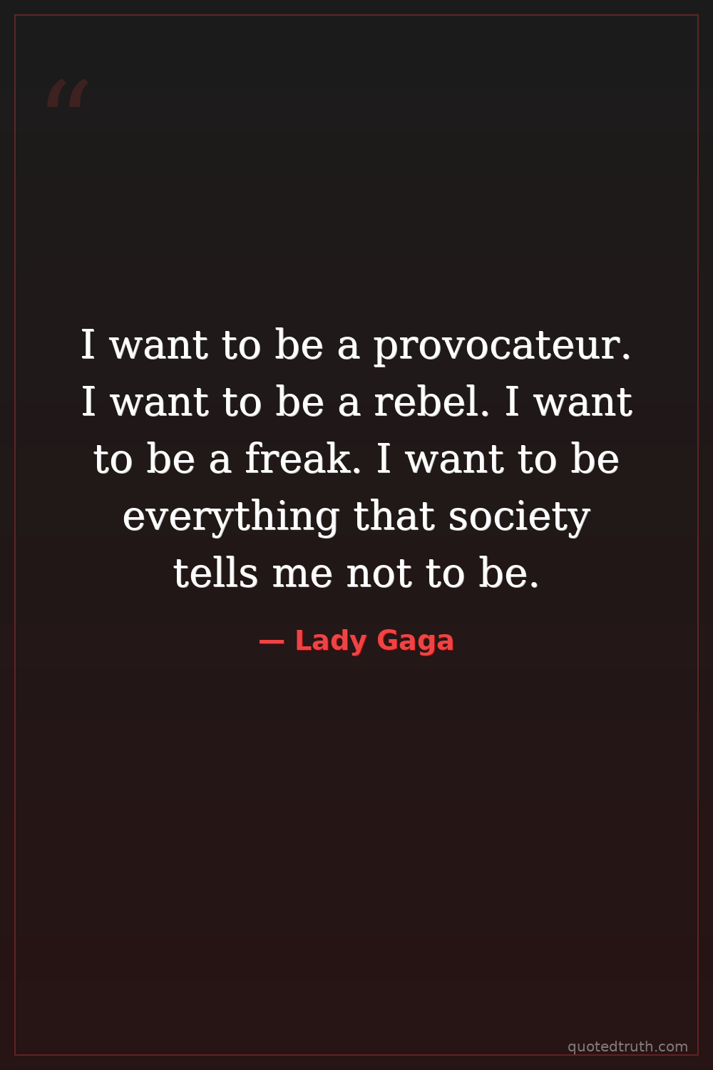 I want to be a provocateur. I want to be a rebel. I want to be a freak. I want to be everything that society tells me not to be.