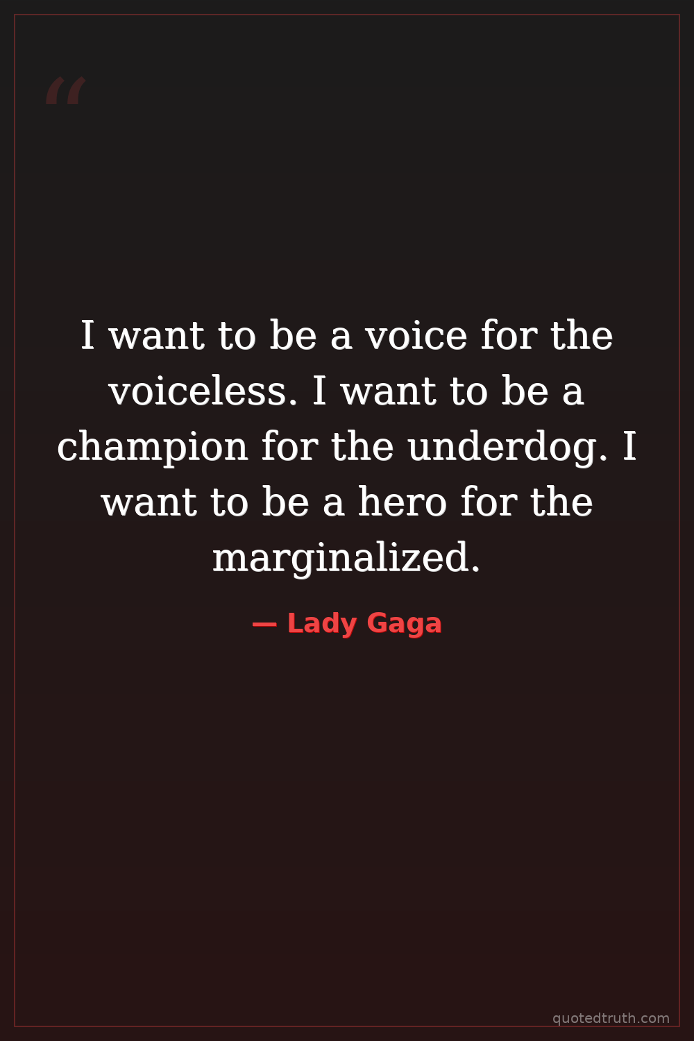 I want to be a voice for the voiceless. I want to be a champion for the underdog. I want to be a hero for the marginalized.