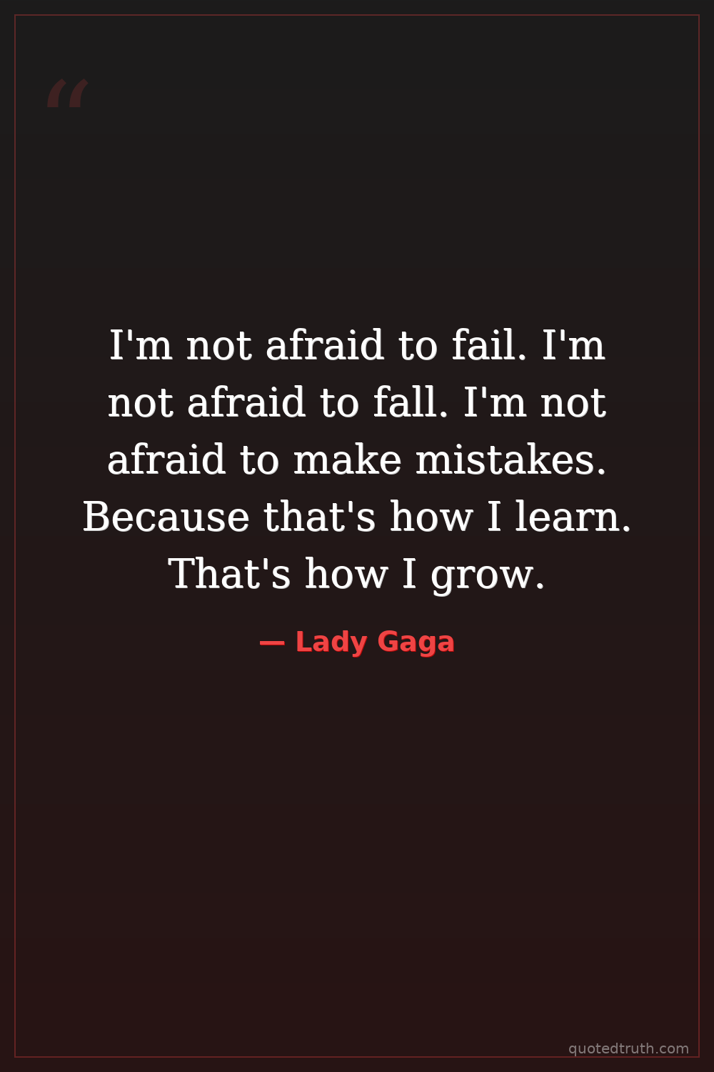 I'm not afraid to fail. I'm not afraid to fall. I'm not afraid to make mistakes. Because that's how I learn. That's how I grow.