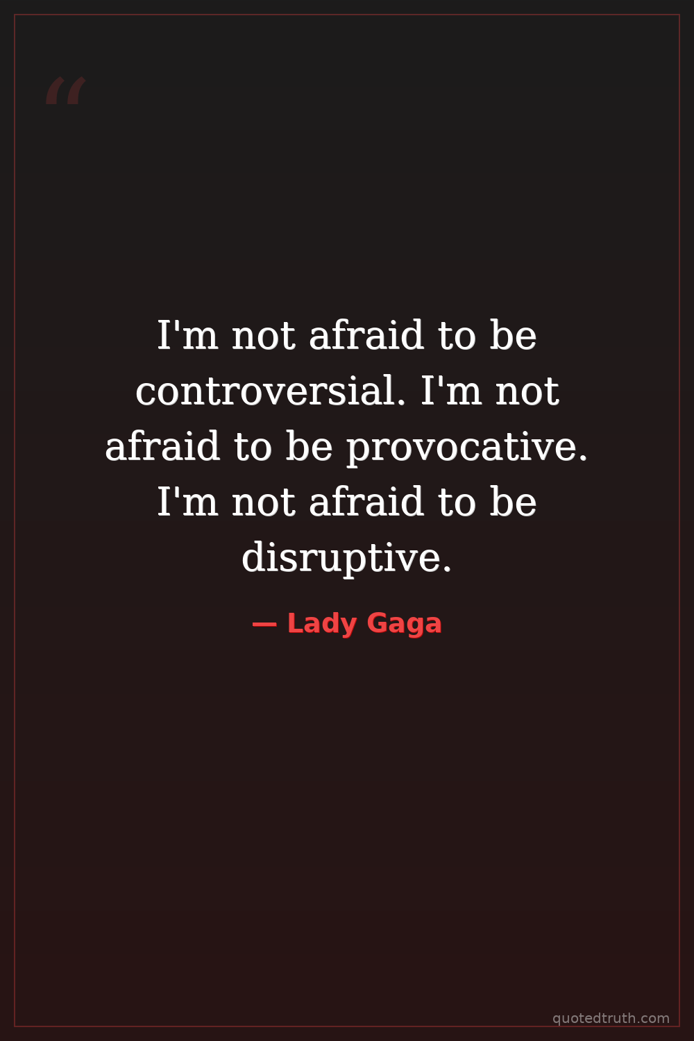 I'm not afraid to be controversial. I'm not afraid to be provocative. I'm not afraid to be disruptive.