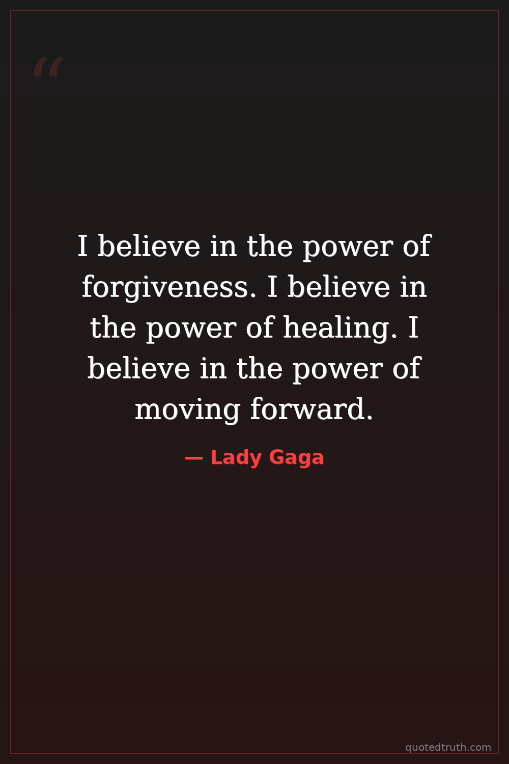 I believe in the power of forgiveness. I believe in the power of healing. I believe in the power of moving forward.