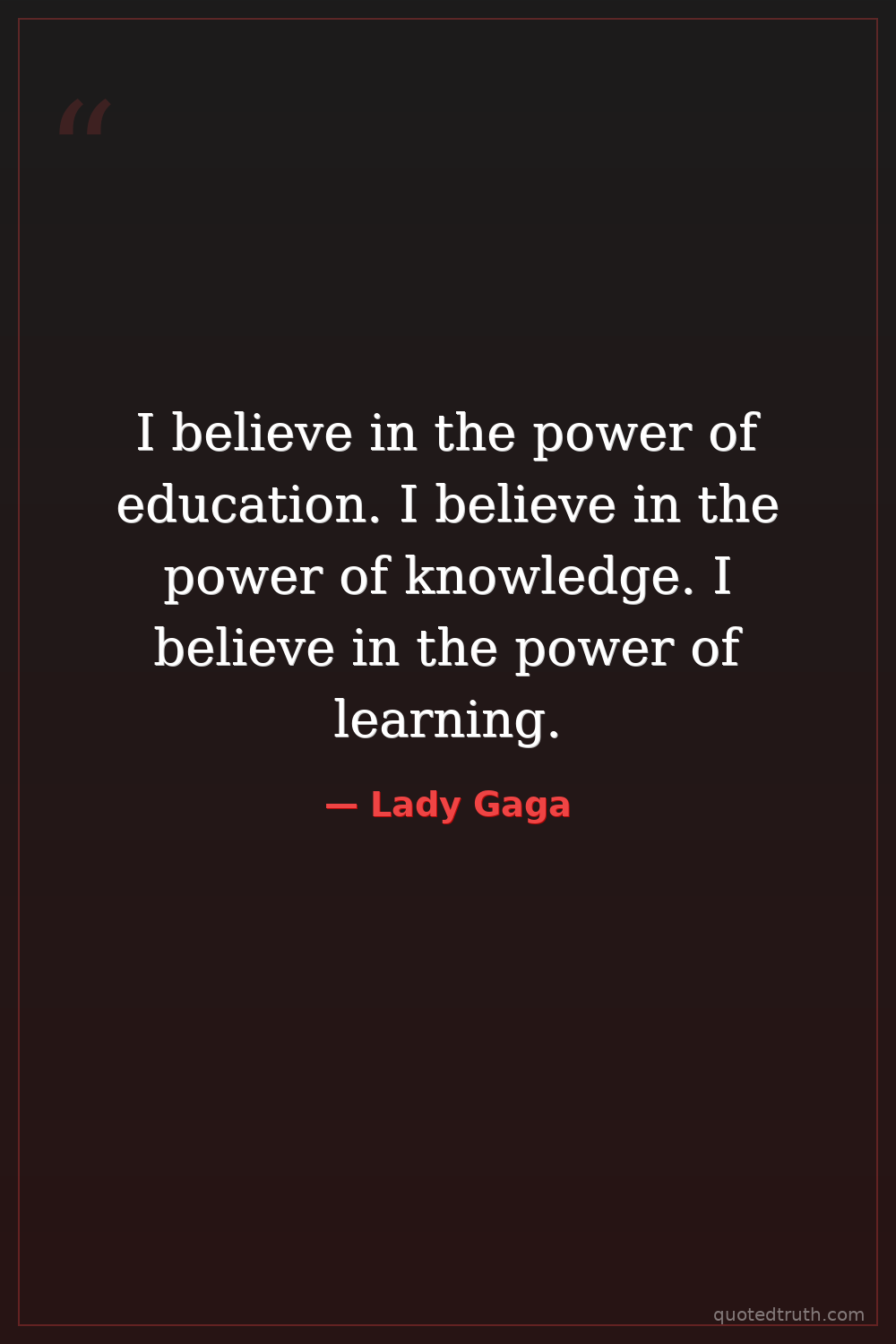 I believe in the power of education. I believe in the power of knowledge. I believe in the power of learning.