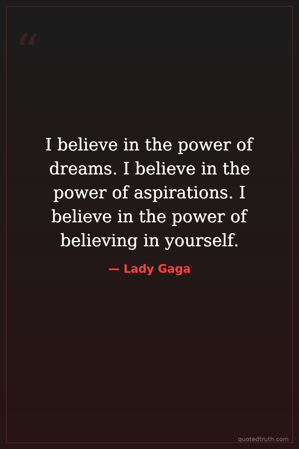 I believe in the power of dreams. I believe in the power of aspirations. I believe in the power of believing in yourself.