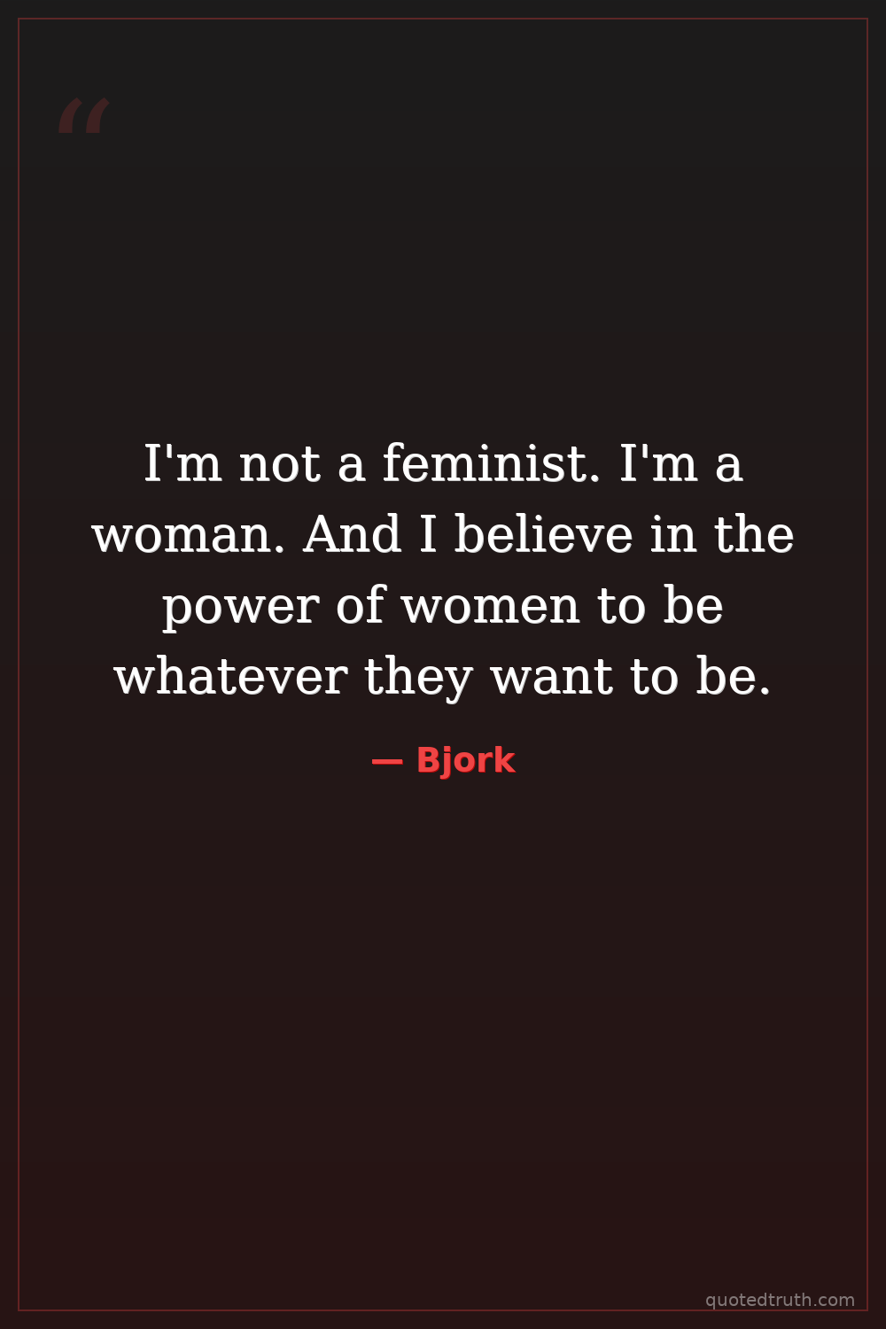 I'm not a feminist. I'm a woman. And I believe in the power of women to be whatever they want to be.