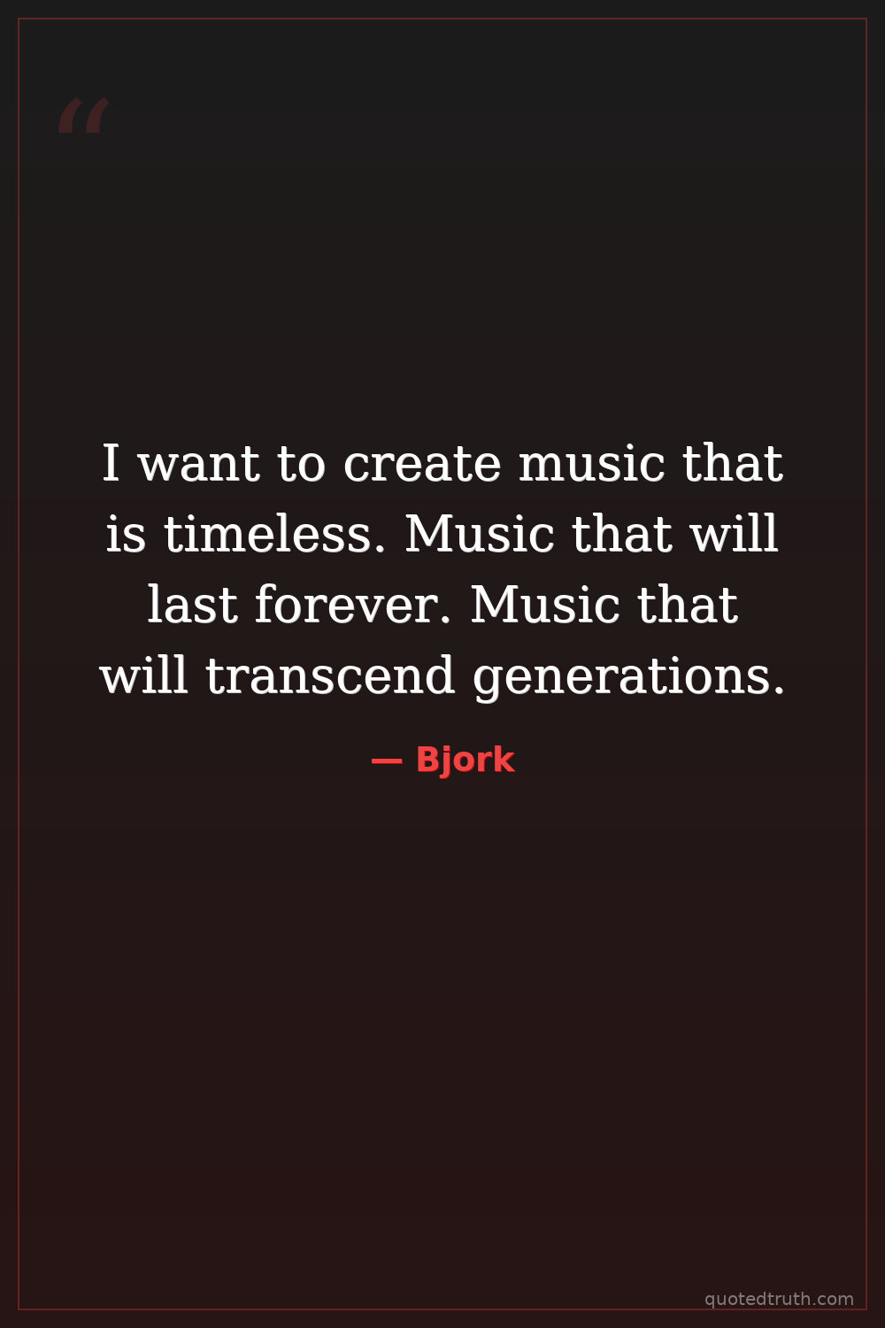 I want to create music that is timeless. Music that will last forever. Music that will transcend generations.