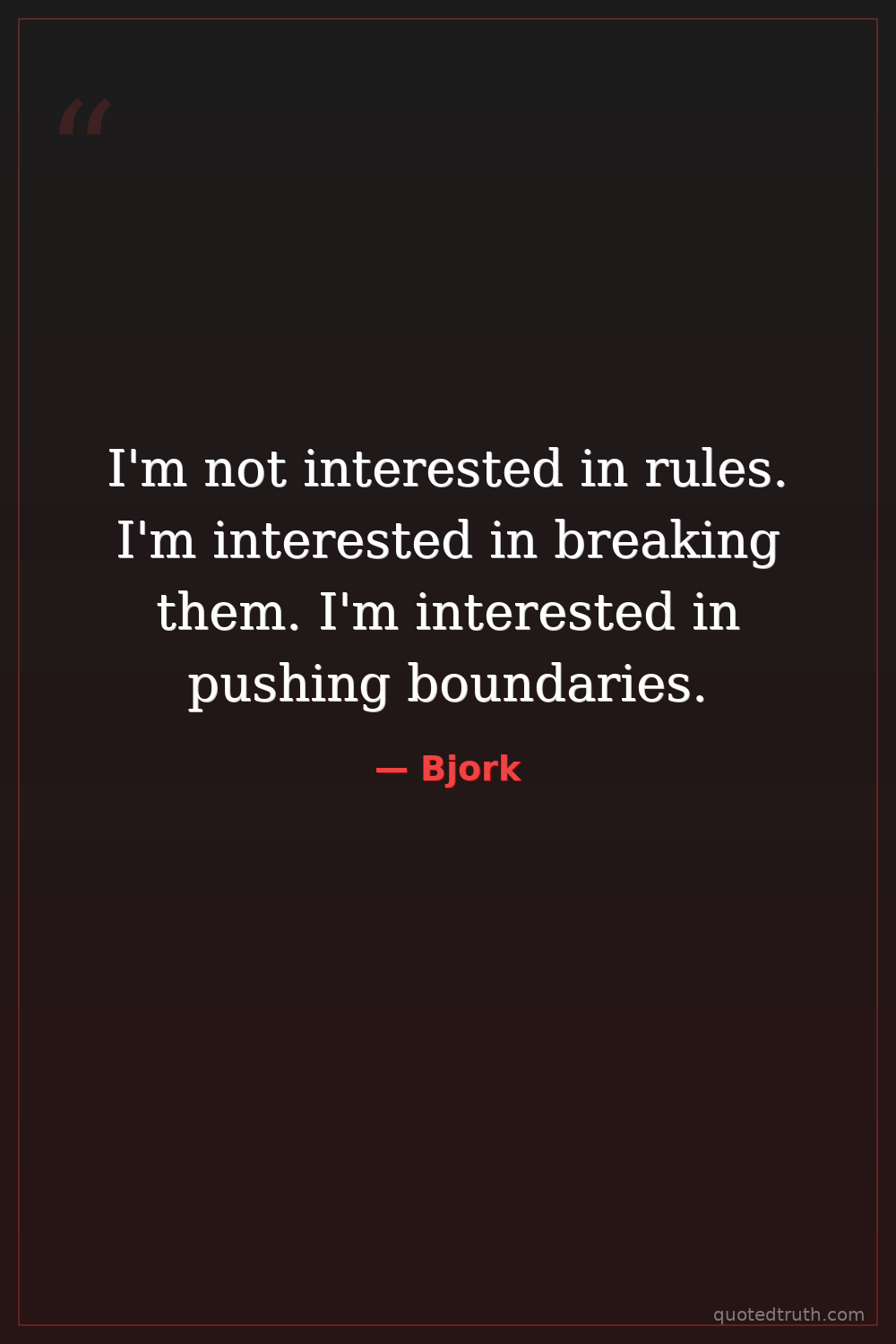 I'm not interested in rules. I'm interested in breaking them. I'm interested in pushing boundaries.