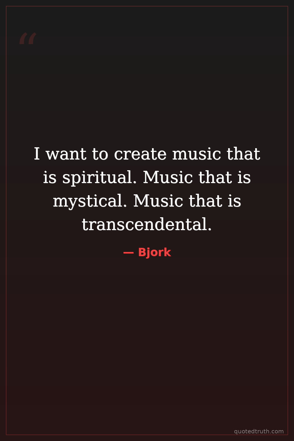 I want to create music that is spiritual. Music that is mystical. Music that is transcendental.