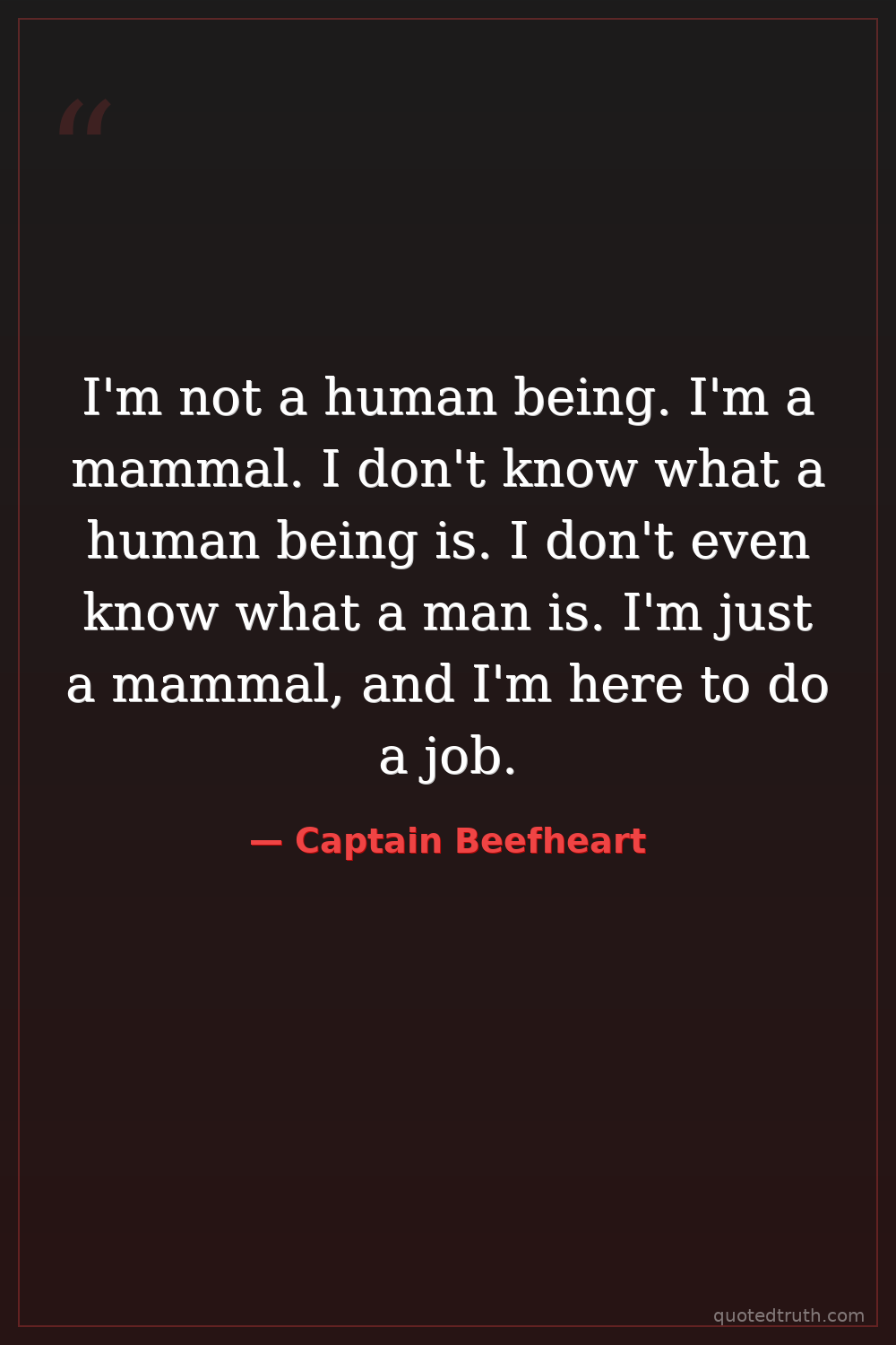 I'm not a human being. I'm a mammal. I don't know what a human being is. I don't even know what a man is. I'm just a mammal, and I'm here to do a job.