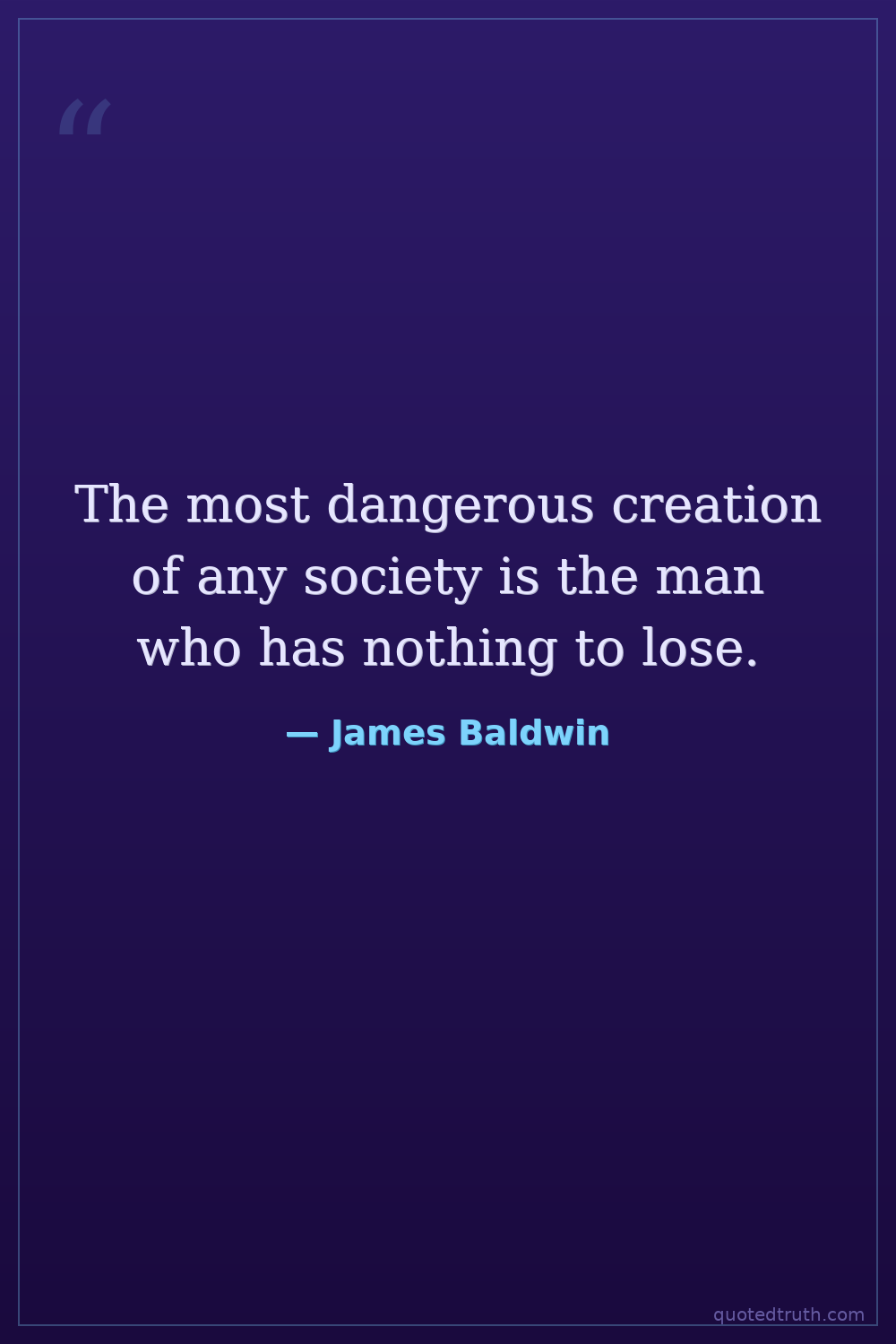From his essay collection 'Nobody Knows My Name: More Notes of a Native Son,' speaking to the desperation and potential for violence that arises from extreme marginalization and lack of hope.