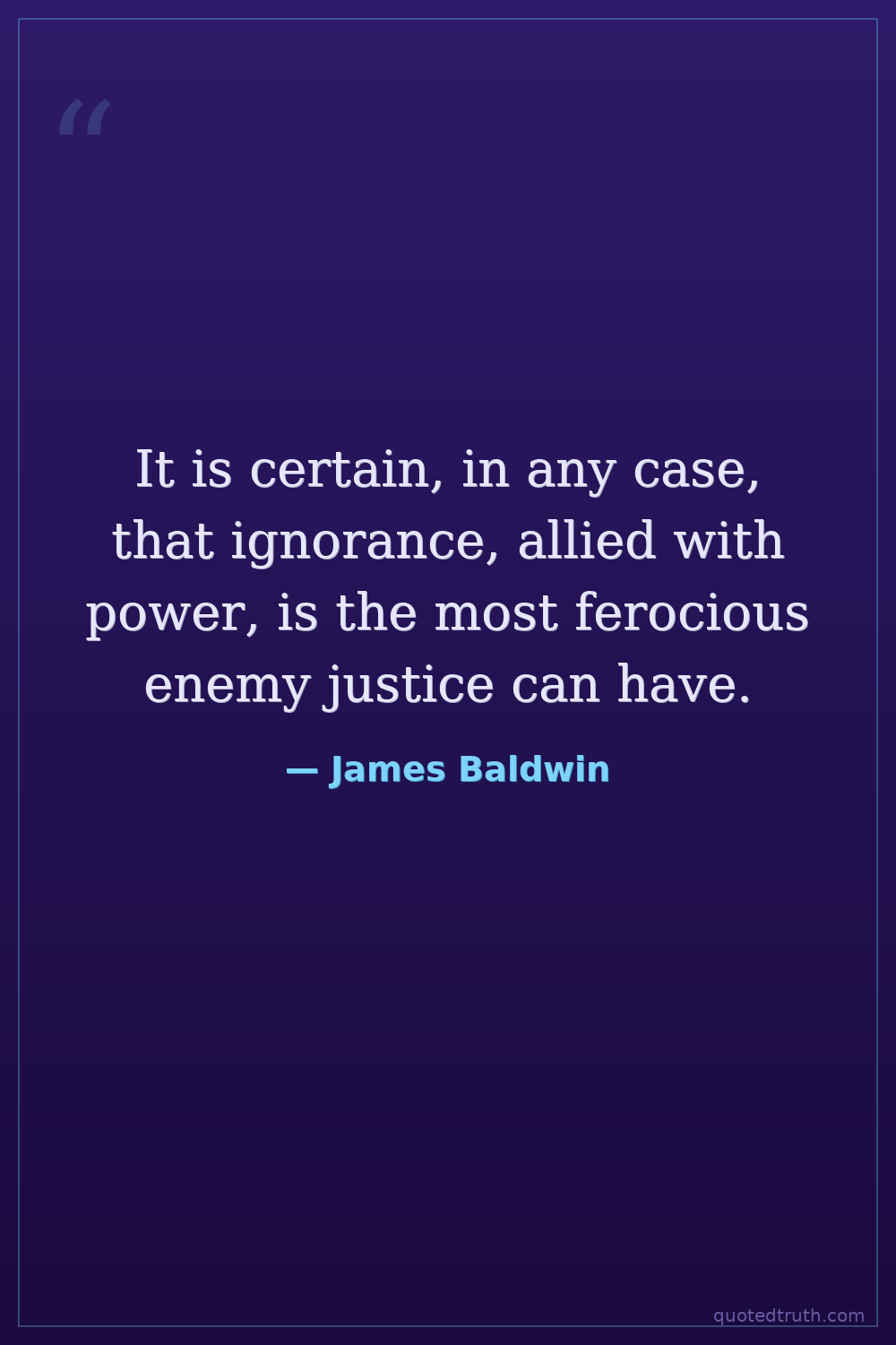 It is certain, in any case, that ignorance, allied with power, is the most ferocious enemy justice can have.