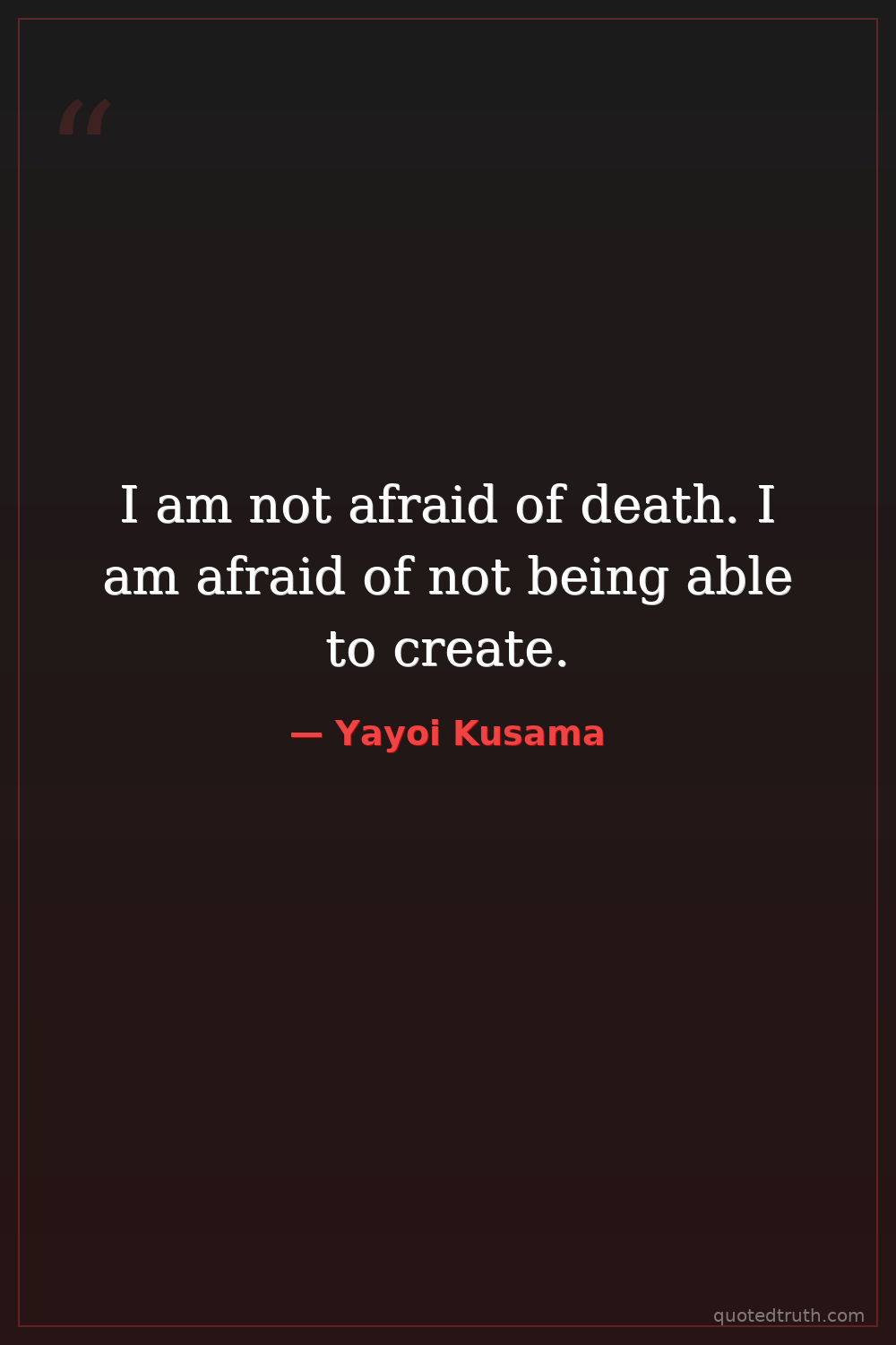I am not afraid of death. I am afraid of not being able to create.