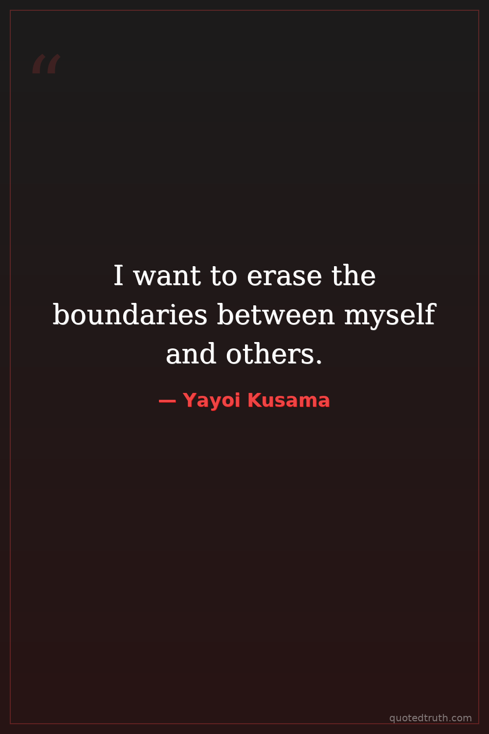 I want to erase the boundaries between myself and others.