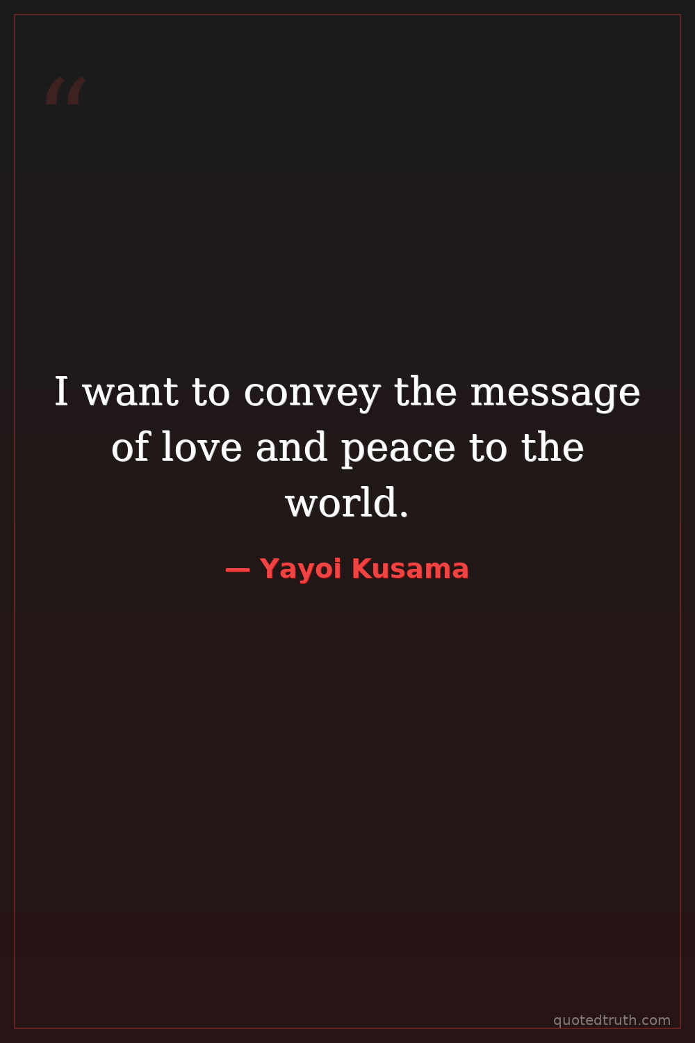 I want to convey the message of love and peace to the world.