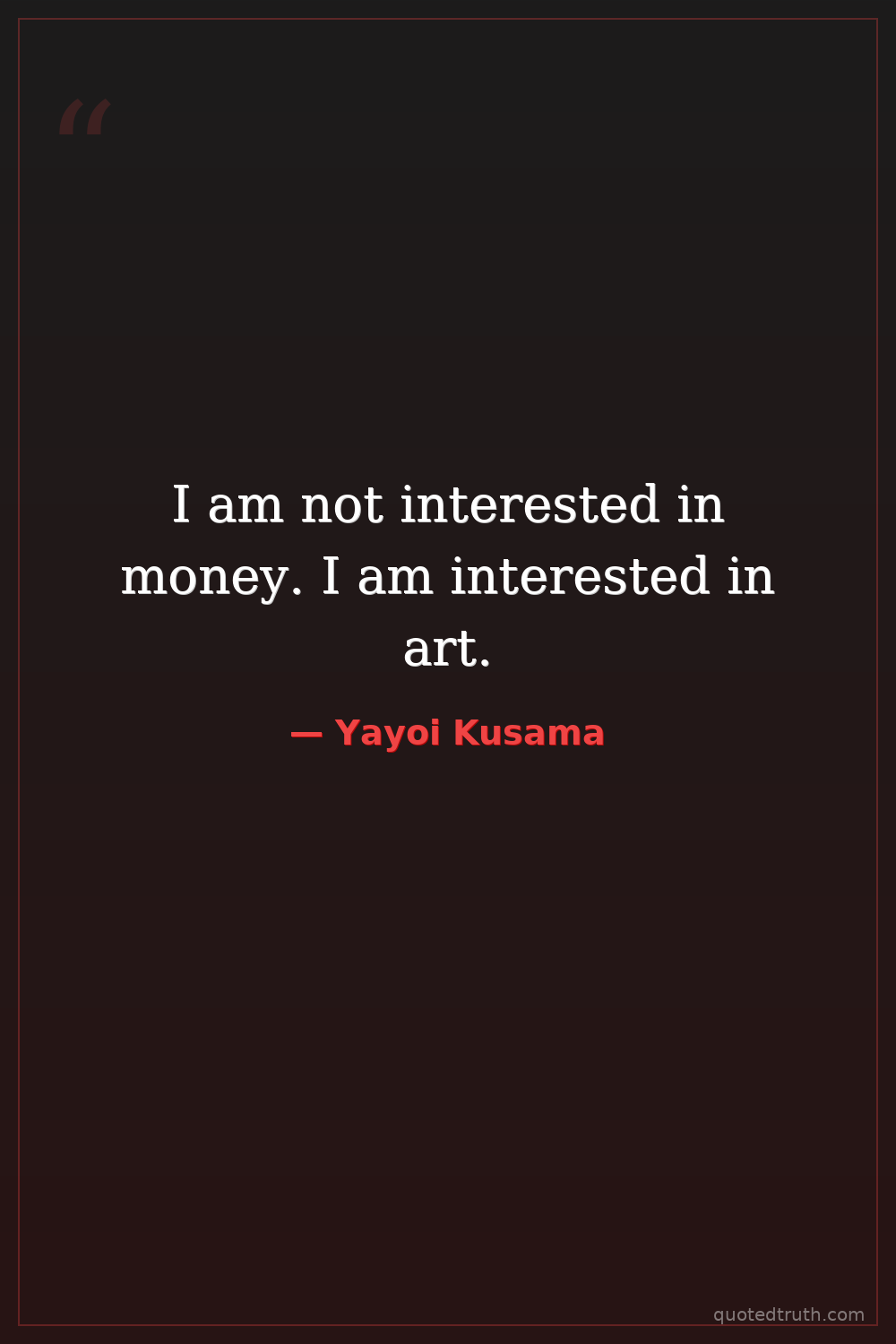 I am not interested in money. I am interested in art.