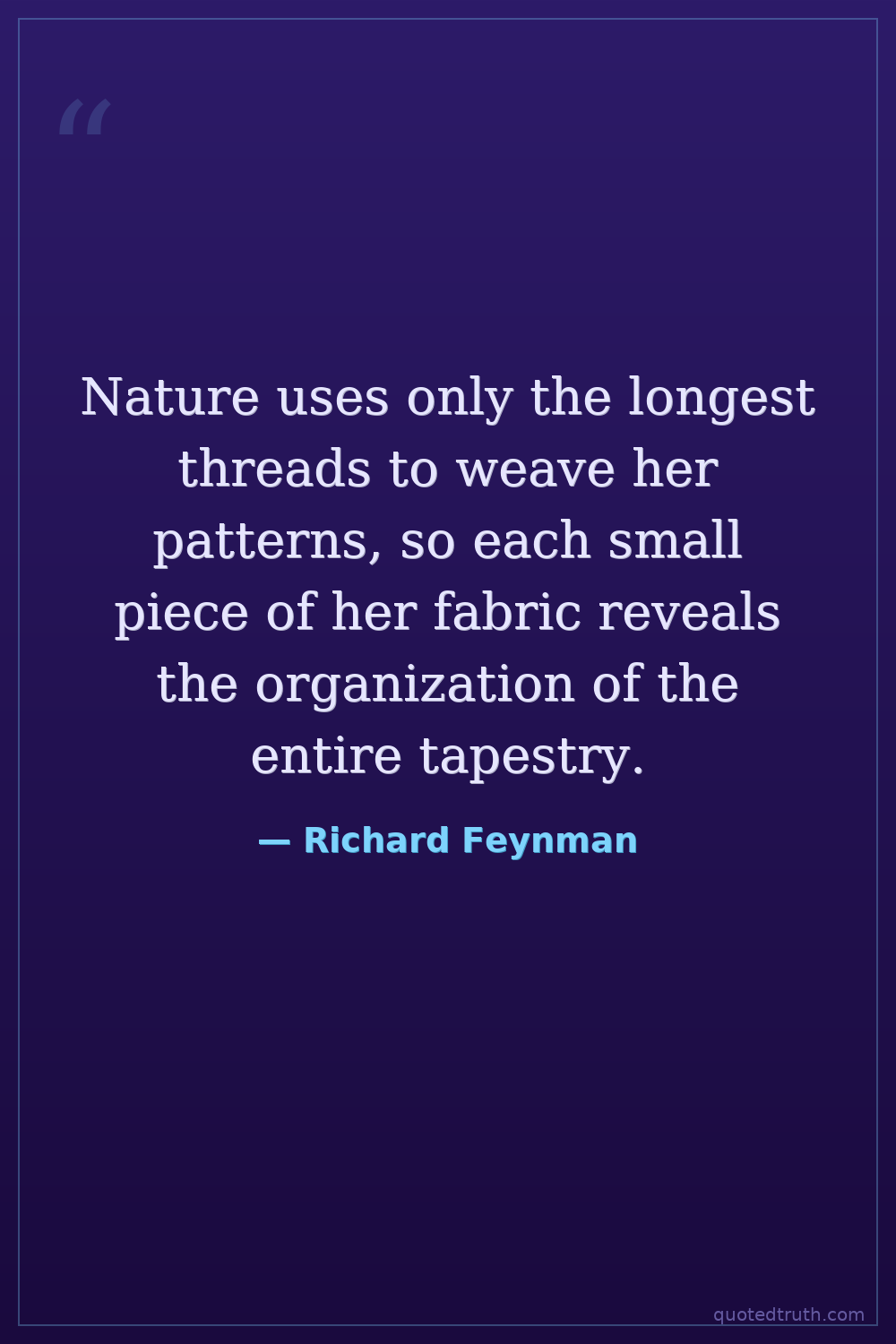 Nature uses only the longest threads to weave her patterns, so each small piece of her fabric reveals the organization of the entire tapestry.