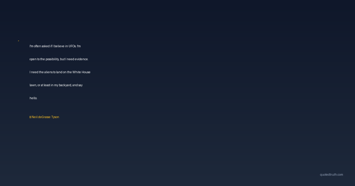 I'm often asked if I believe in UFOs. I'm open to the possibility, but I need evidence. I need the aliens to land on the White House lawn, or at least in my backyard, and say hello.