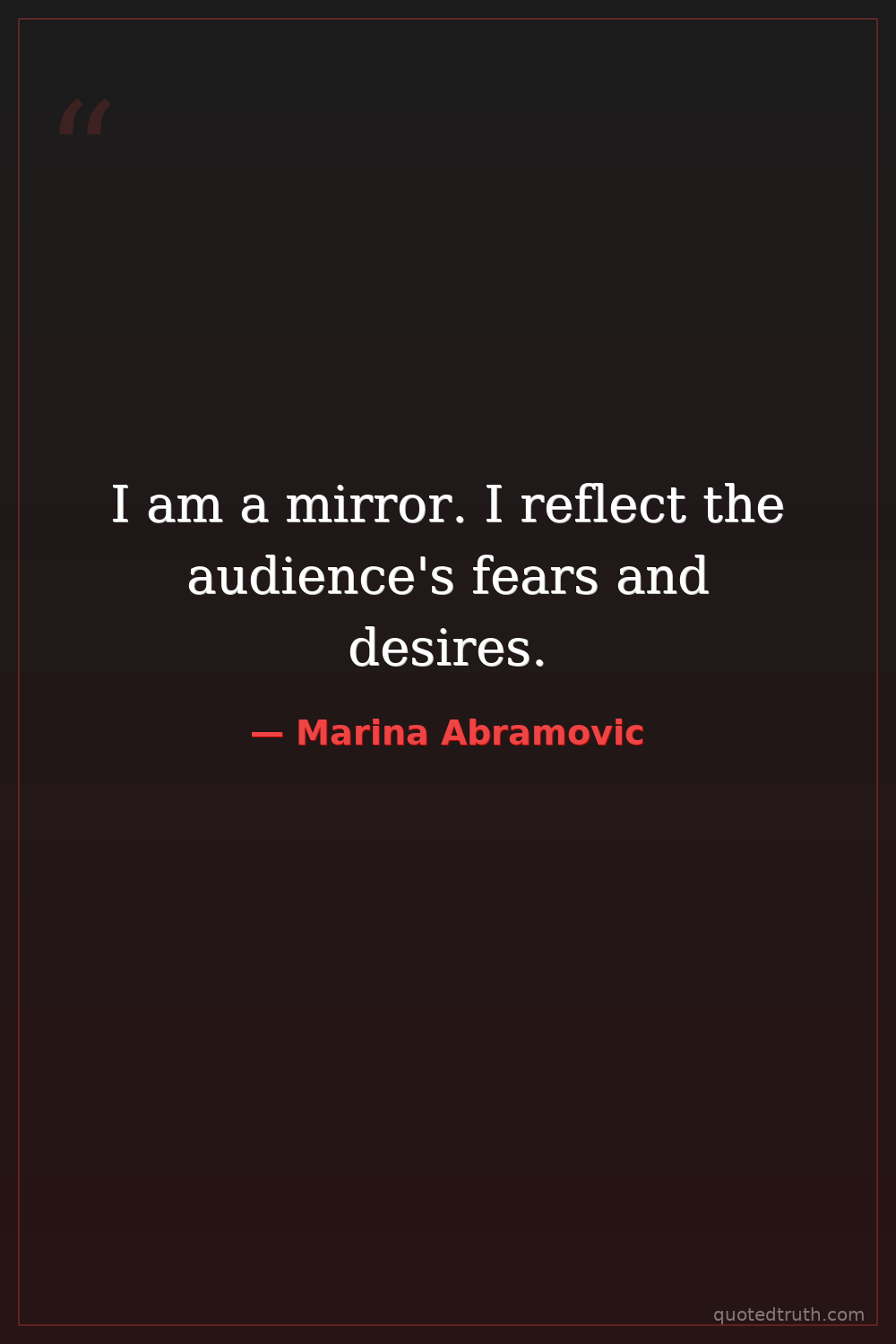 I am a mirror. I reflect the audience's fears and desires.