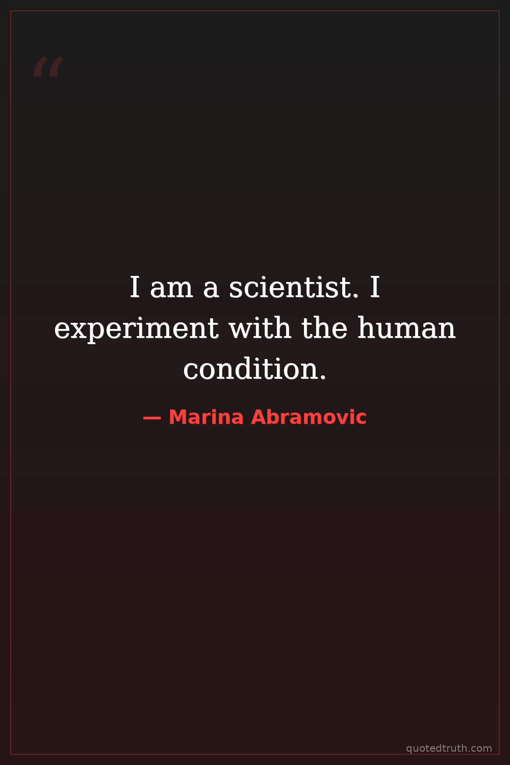 I am a scientist. I experiment with the human condition.