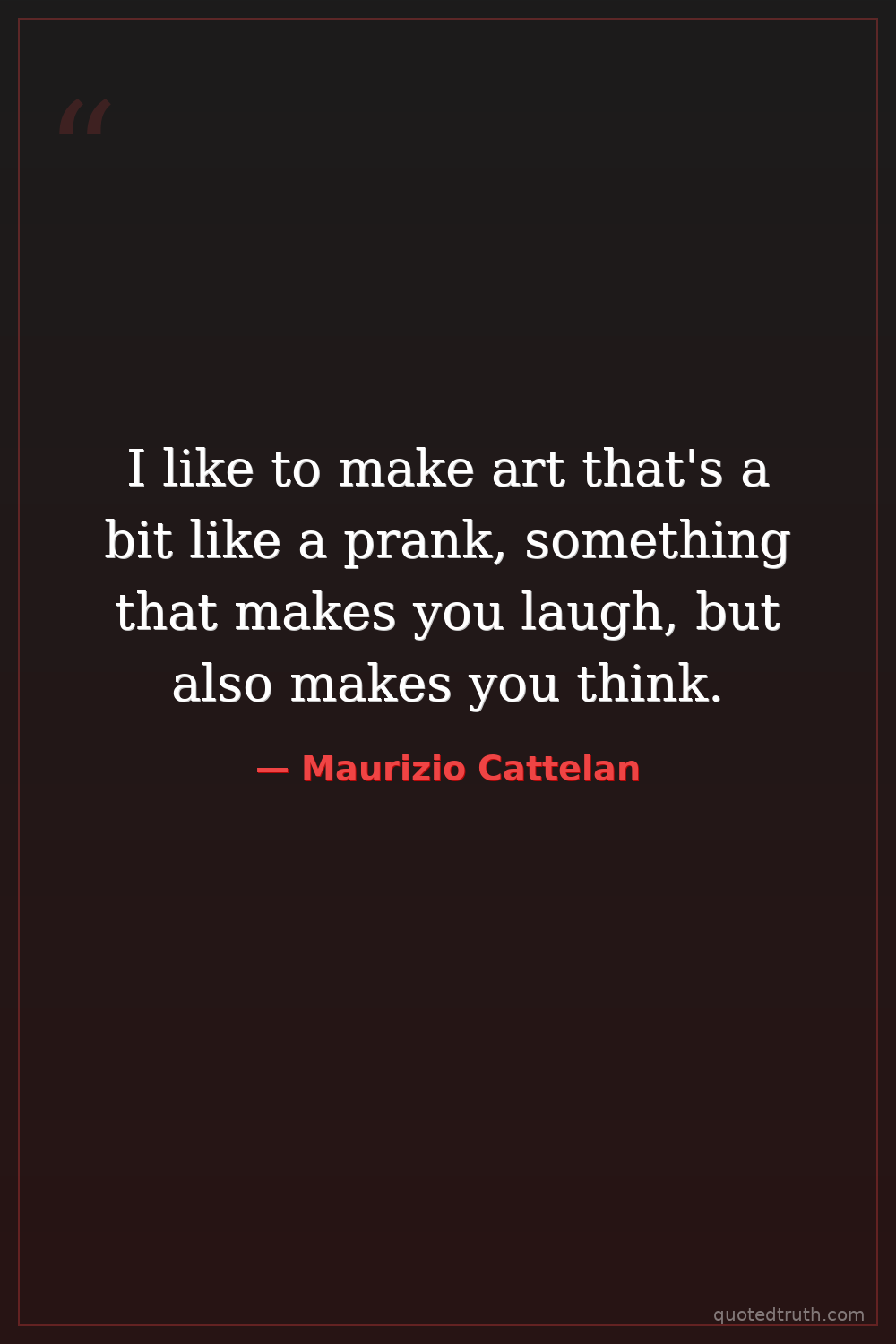 I like to make art that's a bit like a prank, something that makes you laugh, but also makes you think.