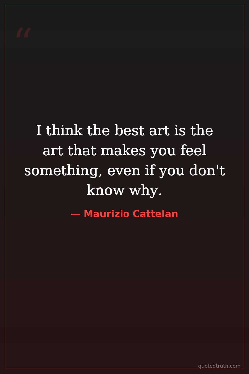 I think the best art is the art that makes you feel something, even if you don't know why.