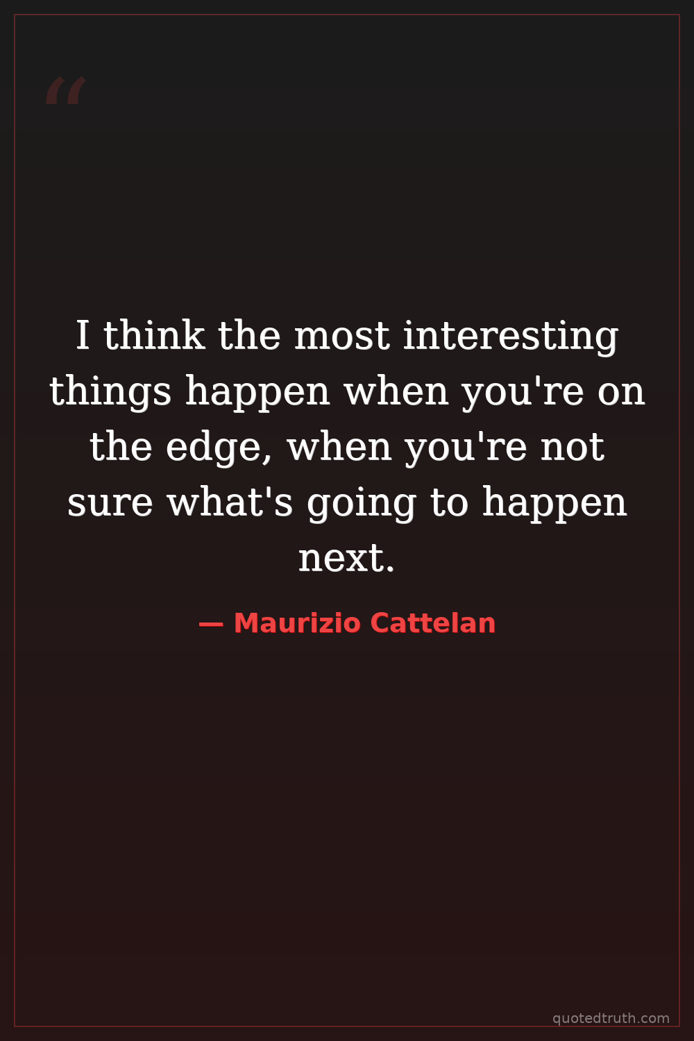 I think the most interesting things happen when you're on the edge, when you're not sure what's going to happen next.