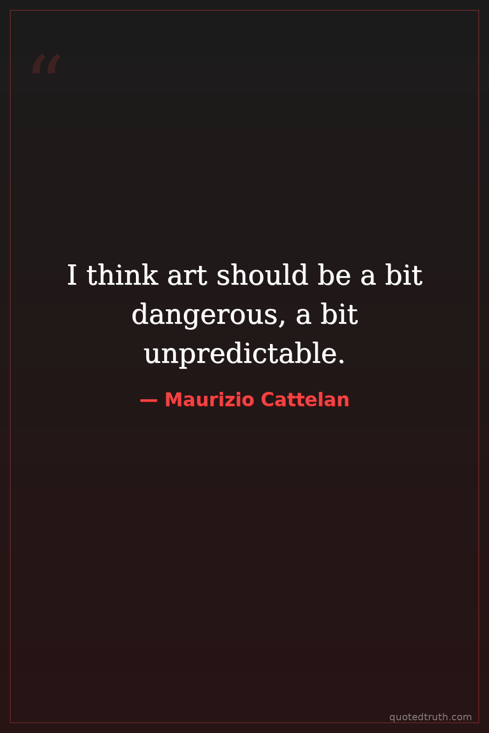 I think art should be a bit dangerous, a bit unpredictable.