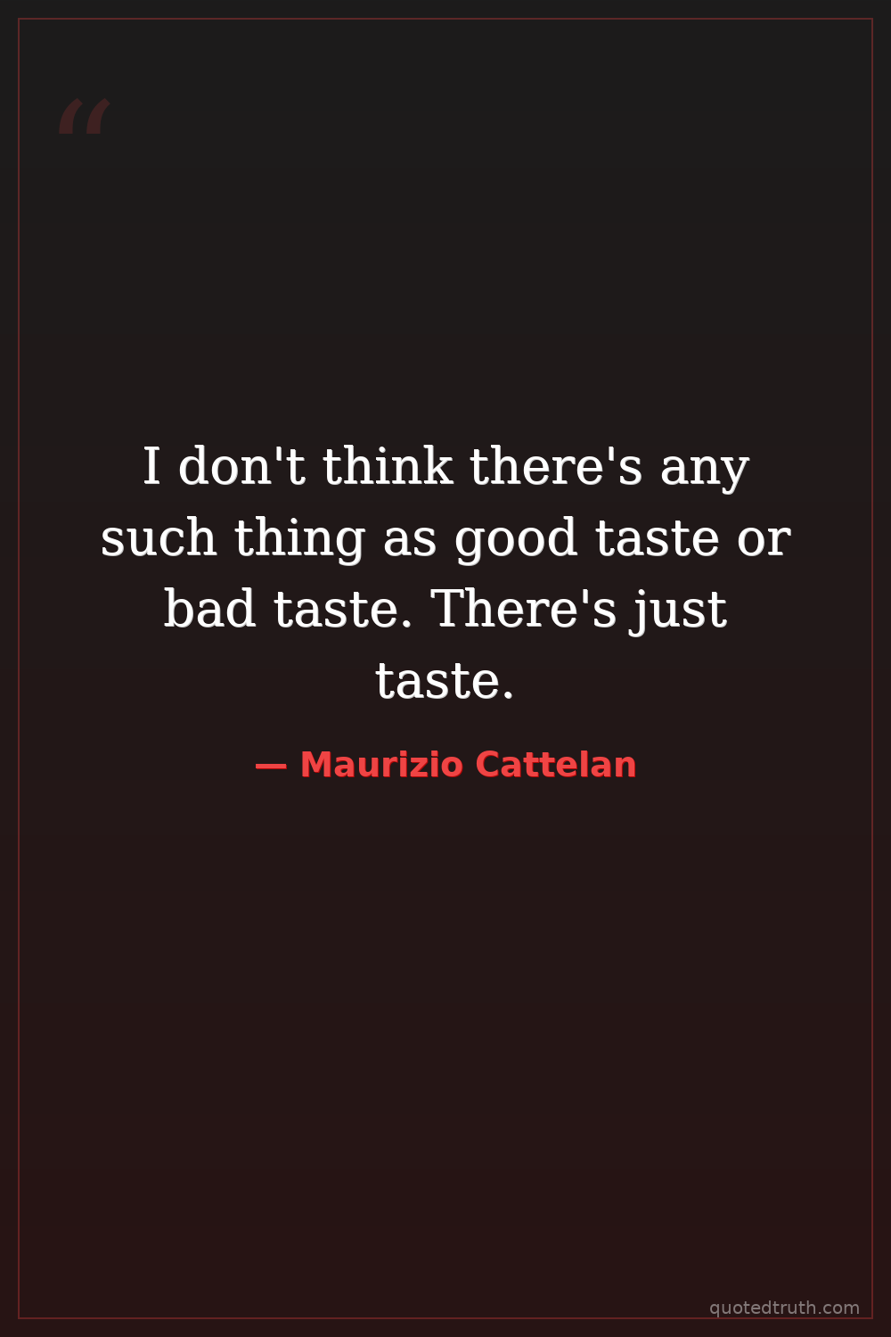 I don't think there's any such thing as good taste or bad taste. There's just taste.