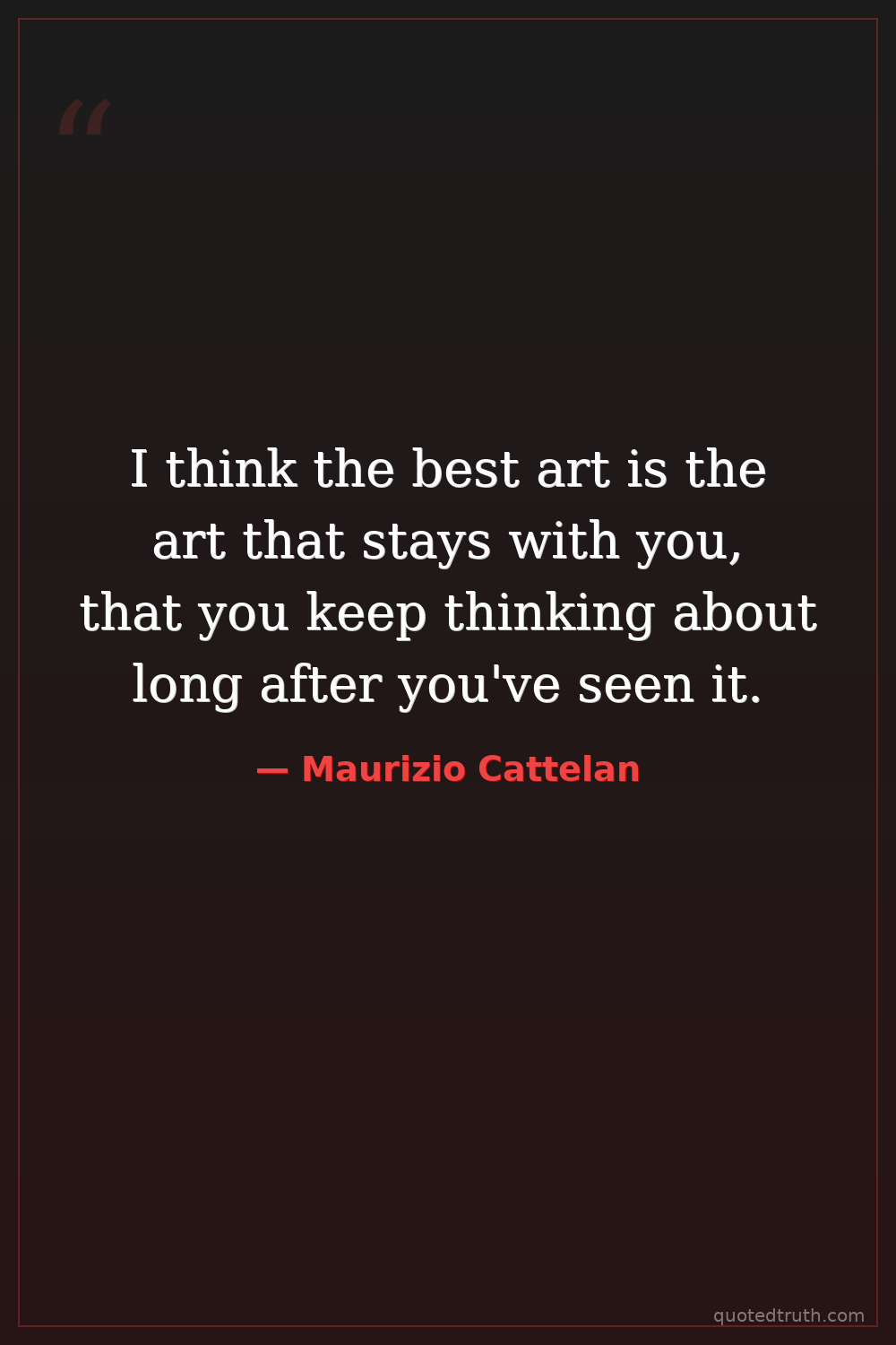 I think the best art is the art that stays with you, that you keep thinking about long after you've seen it.
