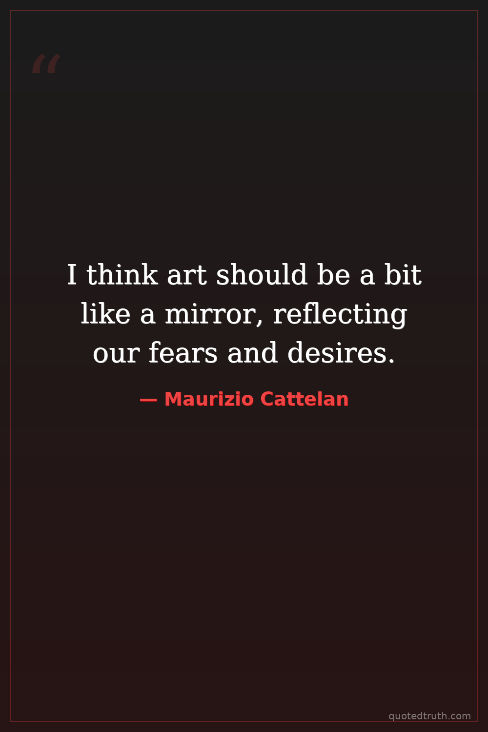 I think art should be a bit like a mirror, reflecting our fears and desires.
