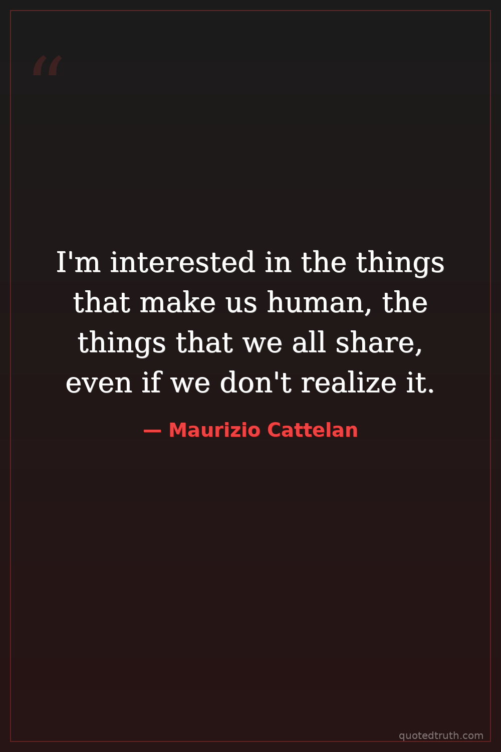 I'm interested in the things that make us human, the things that we all share, even if we don't realize it.