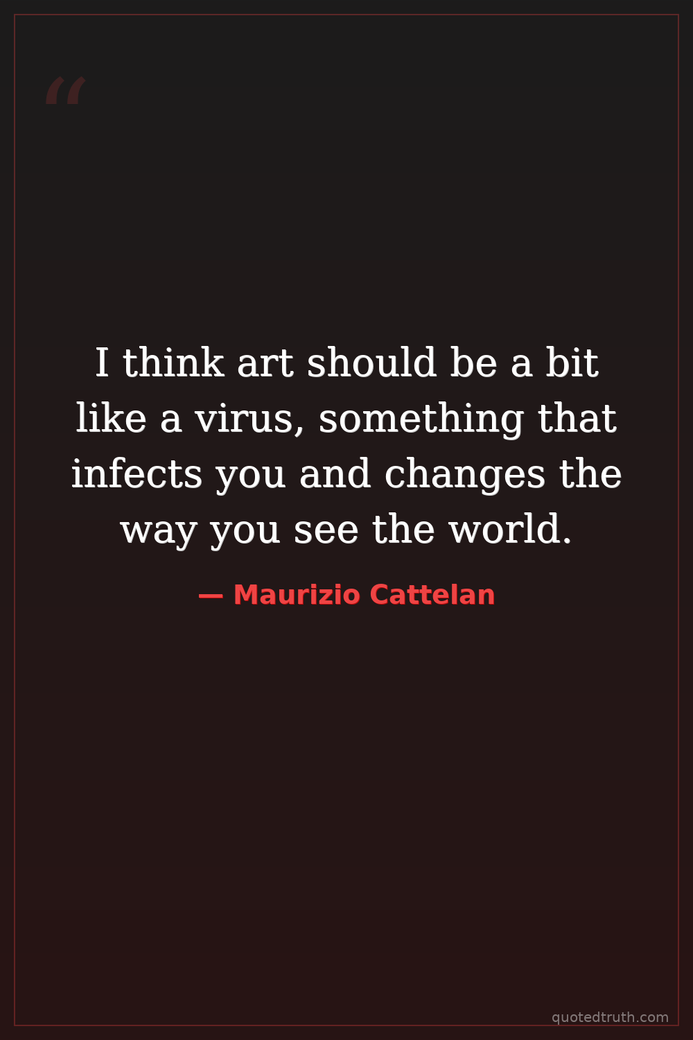 I think art should be a bit like a virus, something that infects you and changes the way you see the world.