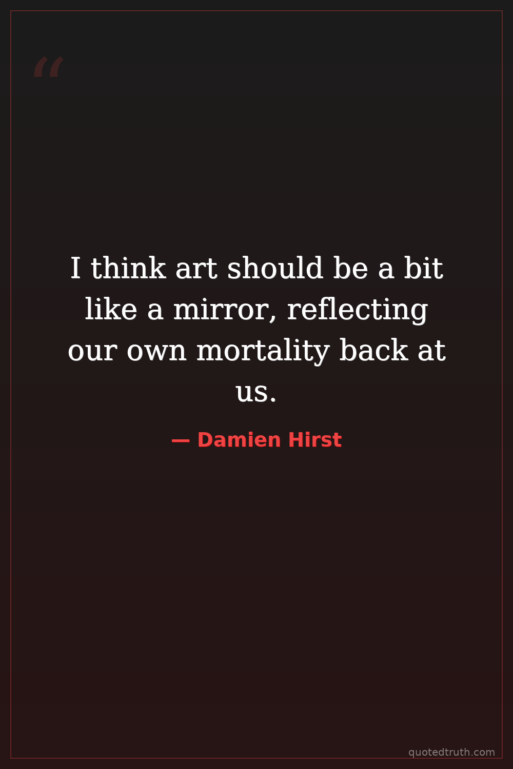 I think art should be a bit like a mirror, reflecting our own mortality back at us.