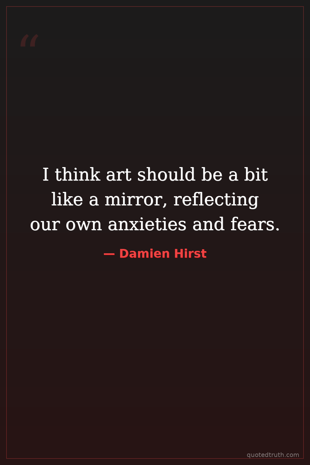 I think art should be a bit like a mirror, reflecting our own anxieties and fears.