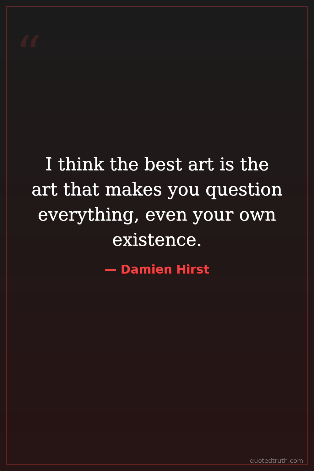 I think the best art is the art that makes you question everything, even your own existence.