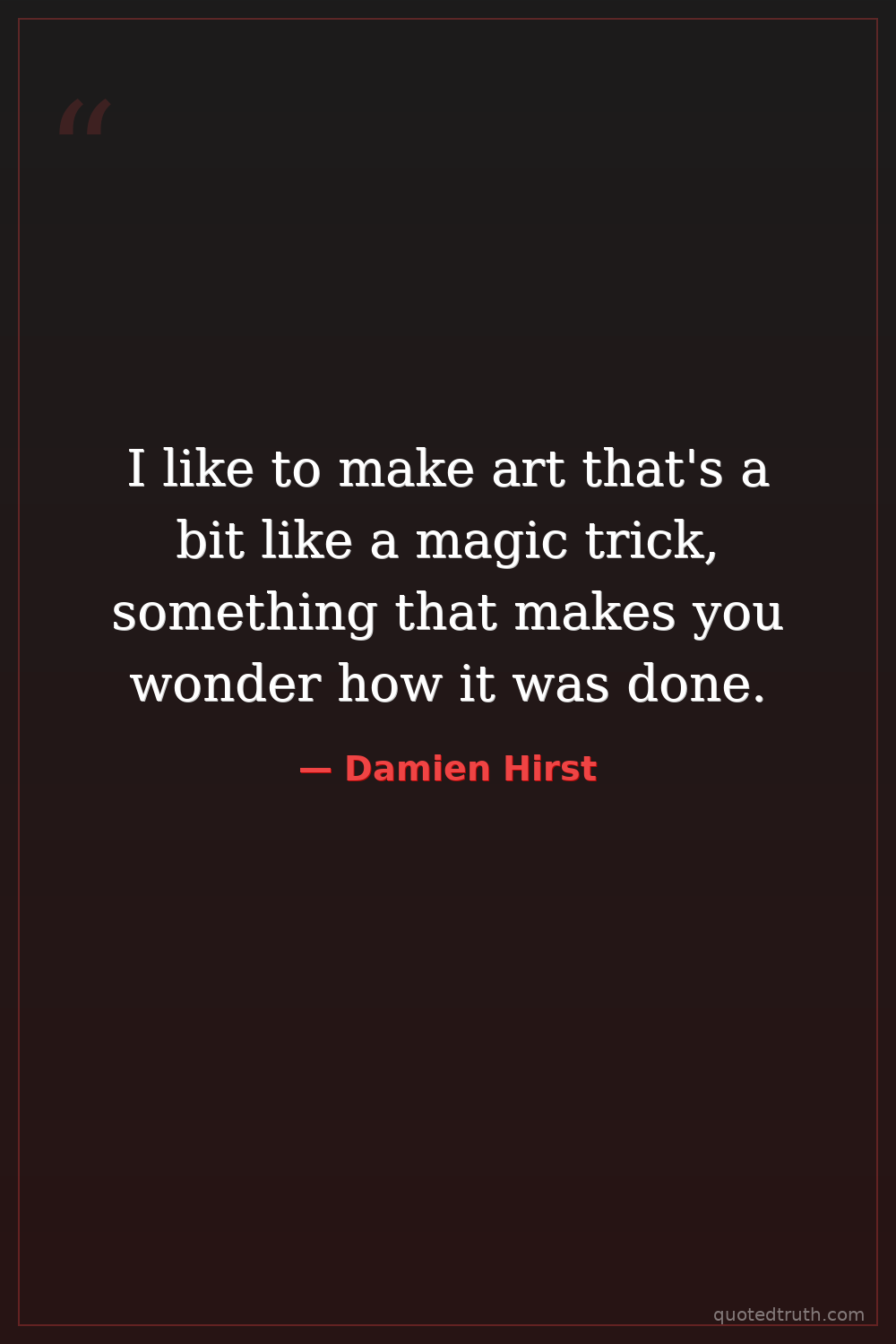 Humorous"I think the best art is the art that makes you feel uncomfortable, that challenges your preconceived notions."