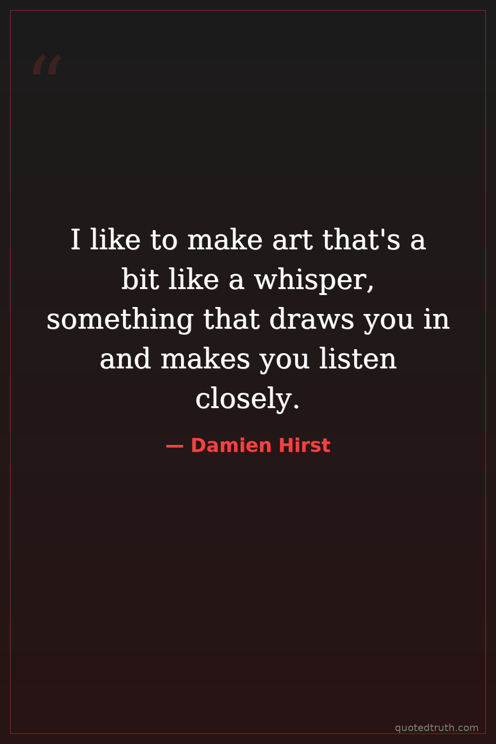I like to make art that's a bit like a whisper, something that draws you in and makes you listen closely.