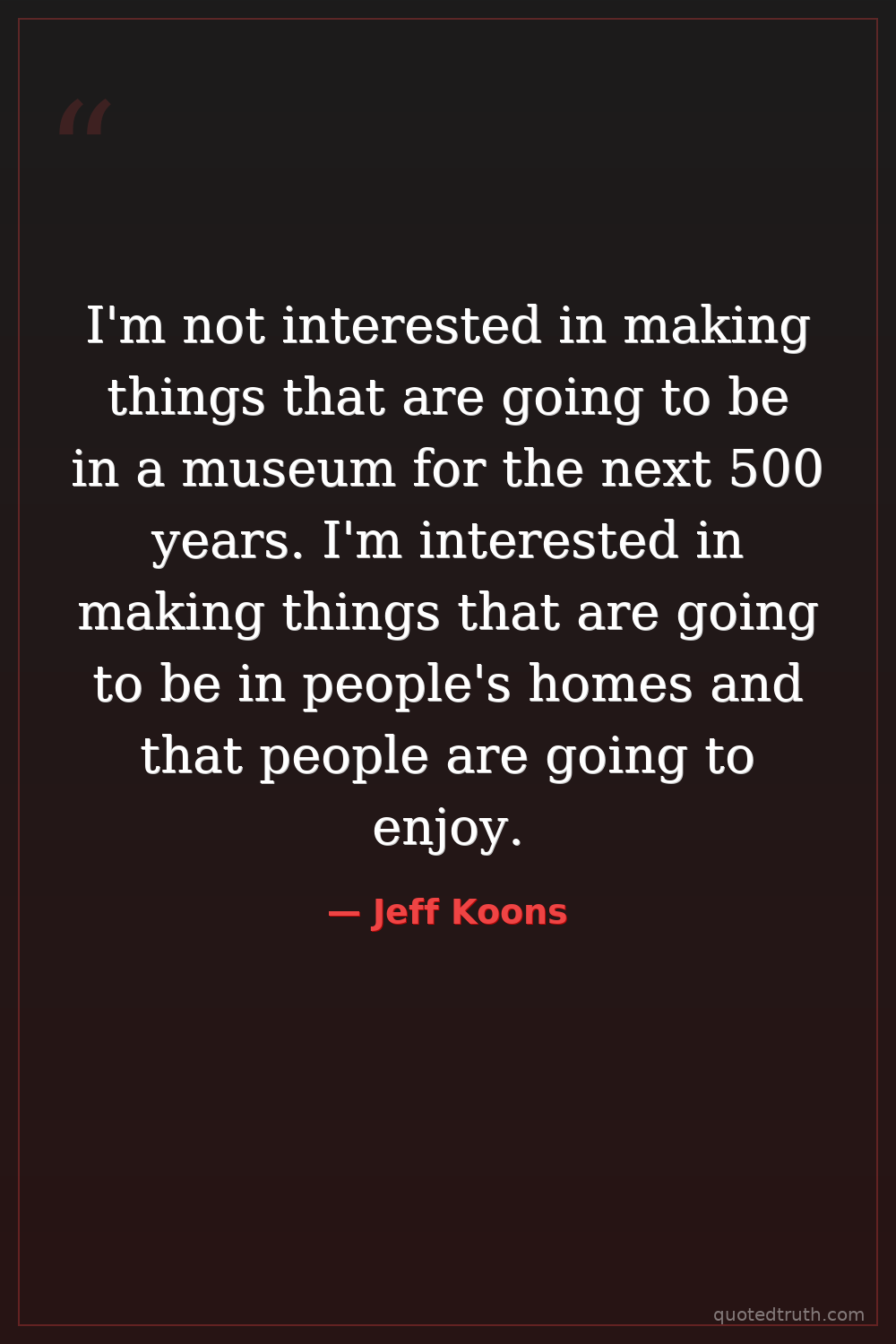 I'm not interested in making things that are going to be in a museum for the next 500 years. I'm interested in making things that are going to be in people's homes and that people are going to enjoy.