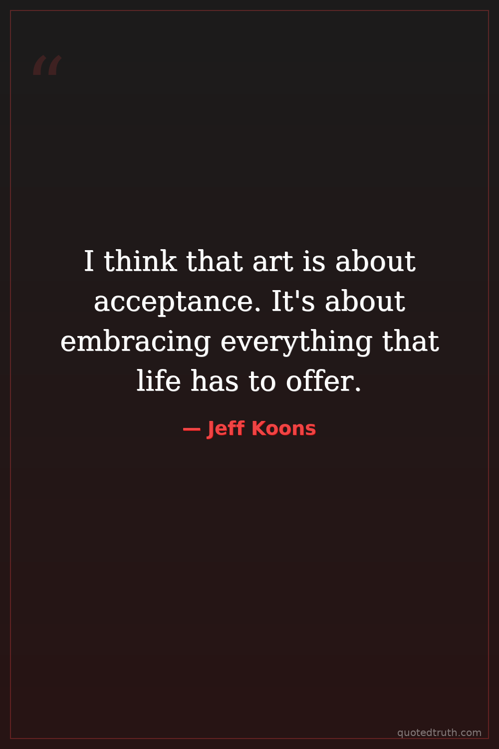 I think that art is about acceptance. It's about embracing everything that life has to offer.