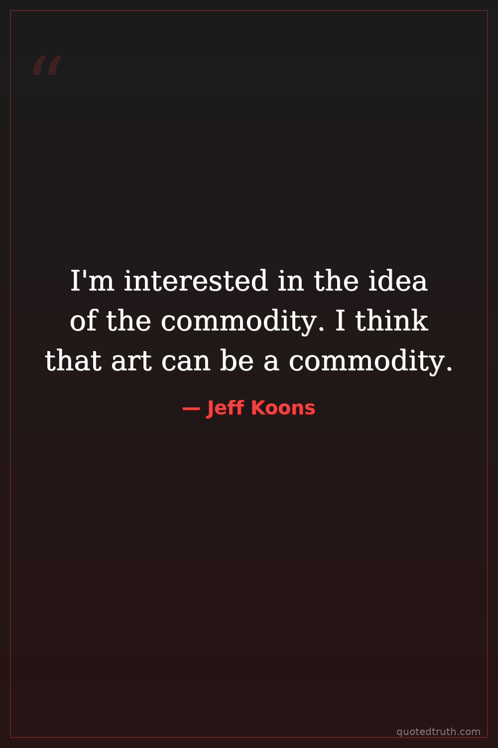 I'm interested in the idea of the commodity. I think that art can be a commodity.