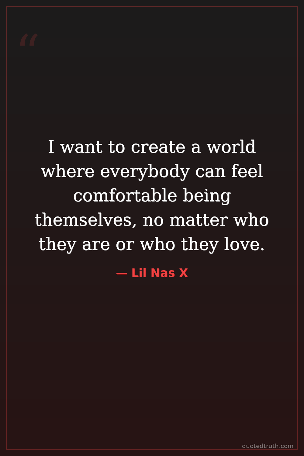 I want to create a world where everybody can feel comfortable being themselves, no matter who they are or who they love.
