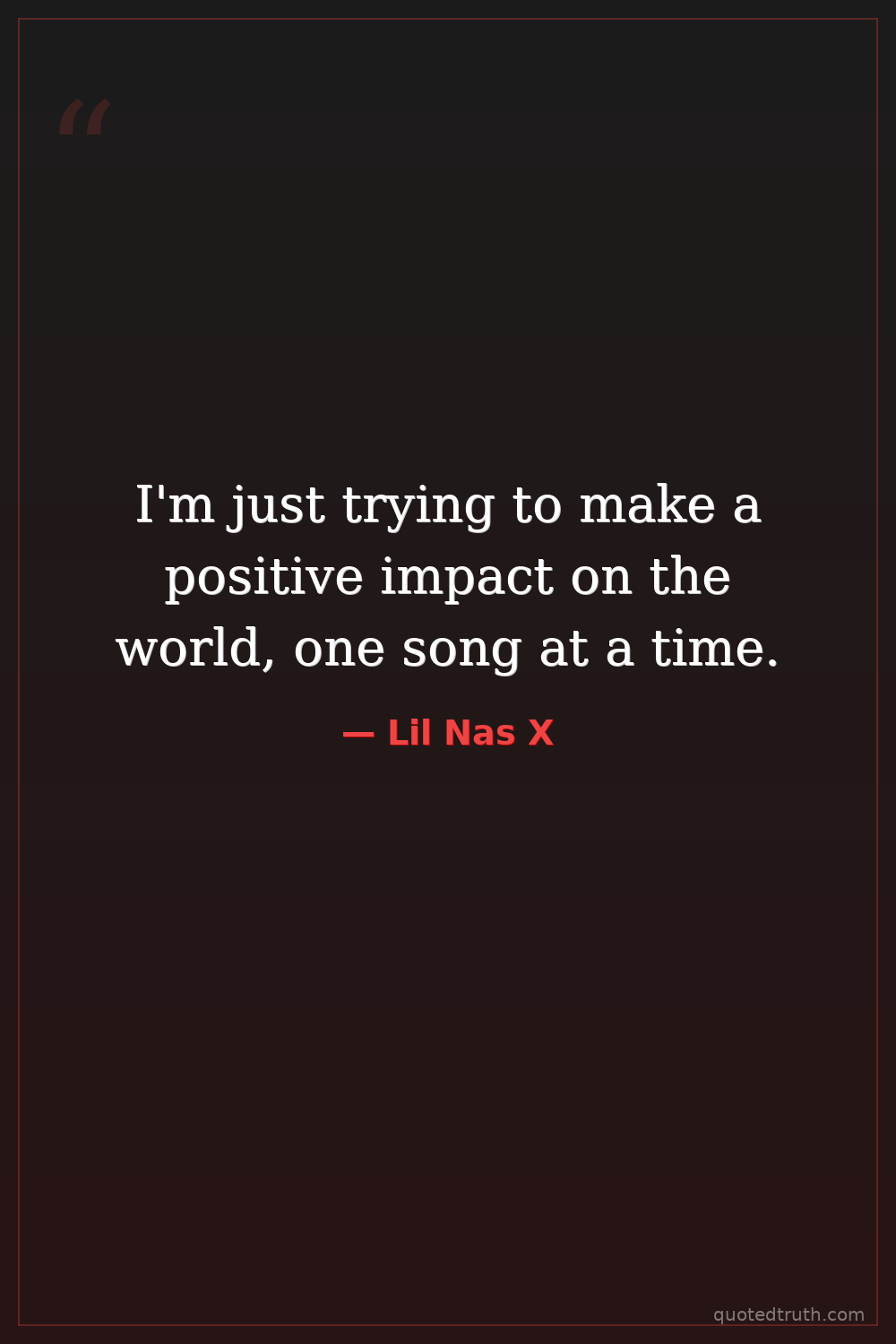 I'm just trying to make a positive impact on the world, one song at a time.