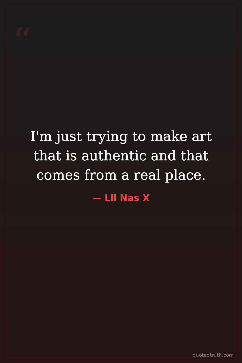 I'm just trying to make art that is authentic and that comes from a real place.
